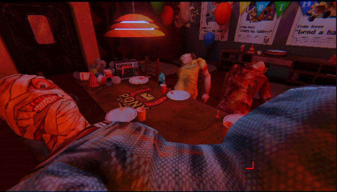 而“Low Poly(低多邊形)”的應用則同樣是復古藝術在《緘默禍運》中帶來獨特感官反饋的重要一環:扭曲的面部貼圖、通過場景打光而特意營造的視野受限空間以及佈滿像素點陣的遊戲畫面——雖然以上種種設計對PS1時代的遊戲而言是迫於技術力不足而無奈爲之,但這種非自然的藝術設定放在如今卻恰巧爲許多獨立恐怖遊戲打開了新的思路:如果愈發高清的圖形能爲玩家帶來的僅僅只有生理上的恐懼,又爲何不調轉思路,利用古早技術中自然而然便能造就的怪誕感從心理層面上讓玩家感受到驚懼?