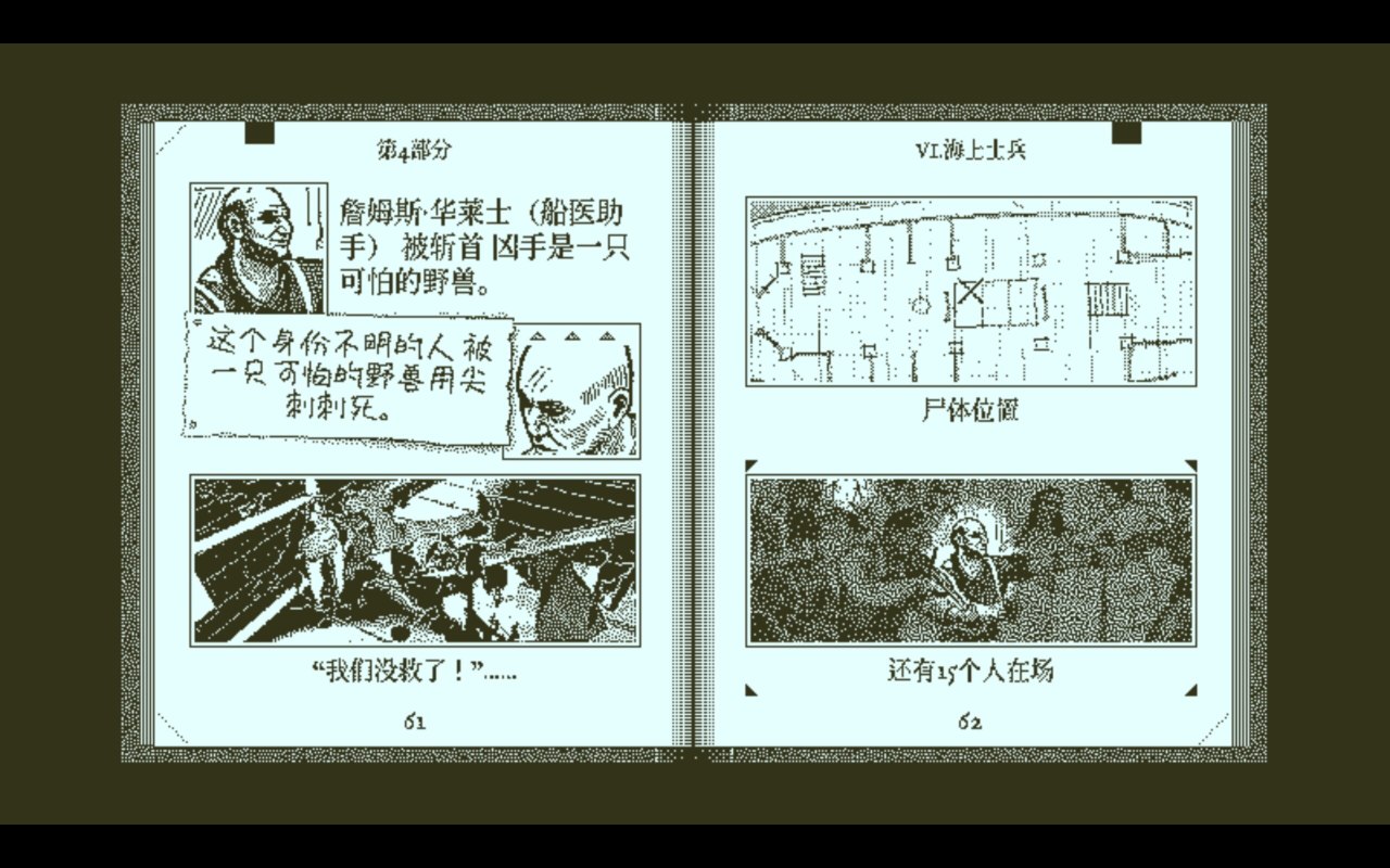 作爲某東印度公司僱傭的調查員,你被派來奧伯拉丁號上評估損失,這次調查帶了兩樣道具,一樣是有着船上人員完整名單、船隻空間平面圖、航海線路圖的記事本,另一樣是具備某種特殊能力的懷錶。