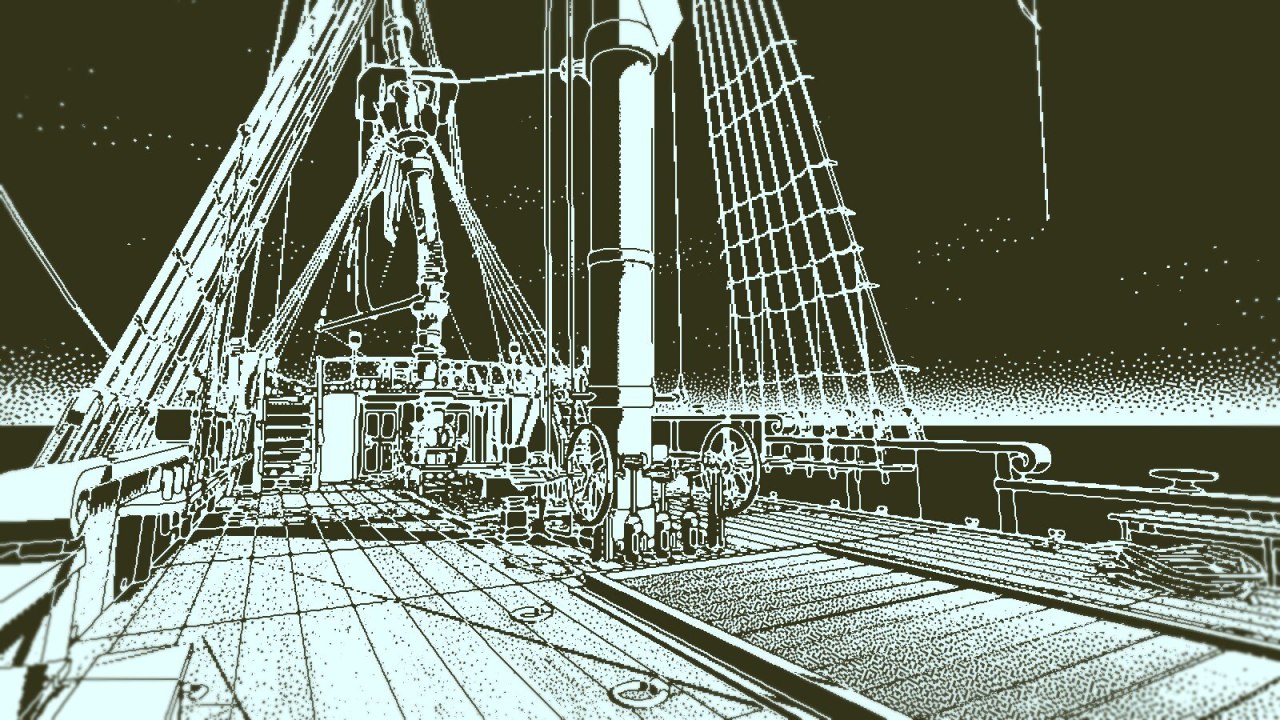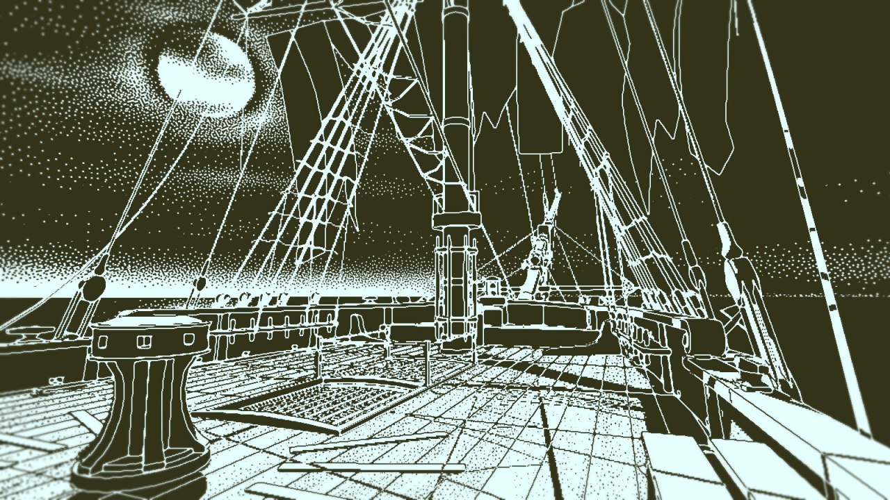 遊戲對我來說唯一的不足是不止聲音讓人身臨其境,整個遊戲的眩暈感也讓人“身臨其境”,線條的畫面加上3D的探索,不到半小時就能擁有絕佳的暈船體驗,且回溯到案發現場時,當時如果遭遇着狂風暴雨,那麼玩家的視角也會像遭了海難一樣又斜又晃,走不穩步伐。
