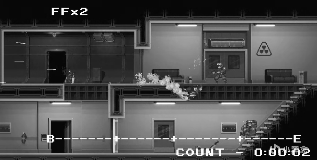 一击毙命,翻滚闪避,当你以为这是经典高难闯关的配置,然而恰恰相反,武士零带来却是极其流畅的动作体验,极其丝滑的跳跃和翻滚以及拳拳到肉,酣畅淋漓的斩击与反弹构成了一套不可思议的动作系统。多种解法的地图设计围绕着时间减缓,武士刀,投掷物这三点构筑了一套容易上手但又完全不枯燥的战斗循环。