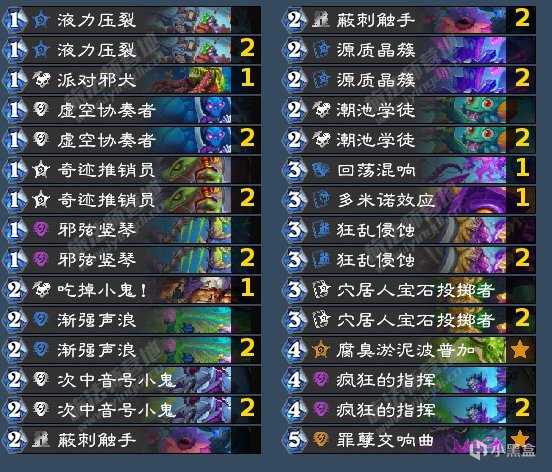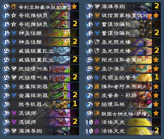 這套卡組打污手騎不像宇宙那套那麼難打,勝率大概55開,因爲他在給隨從加buff的時候我們就可以開始鋪場順便打打臉了