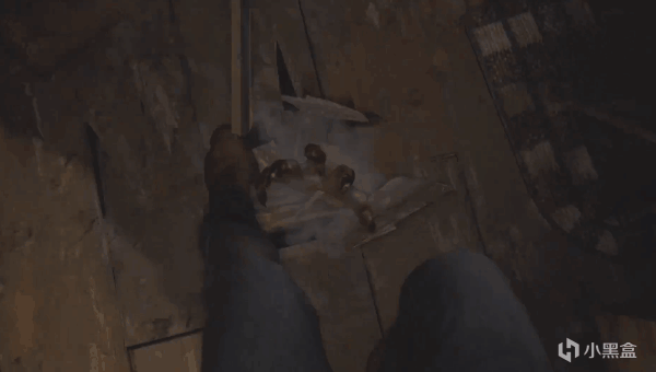 進入木屋後調查櫃子,打開的瞬間會竄出一隻老鼠,轉身頭頂傳來巨大的響聲。