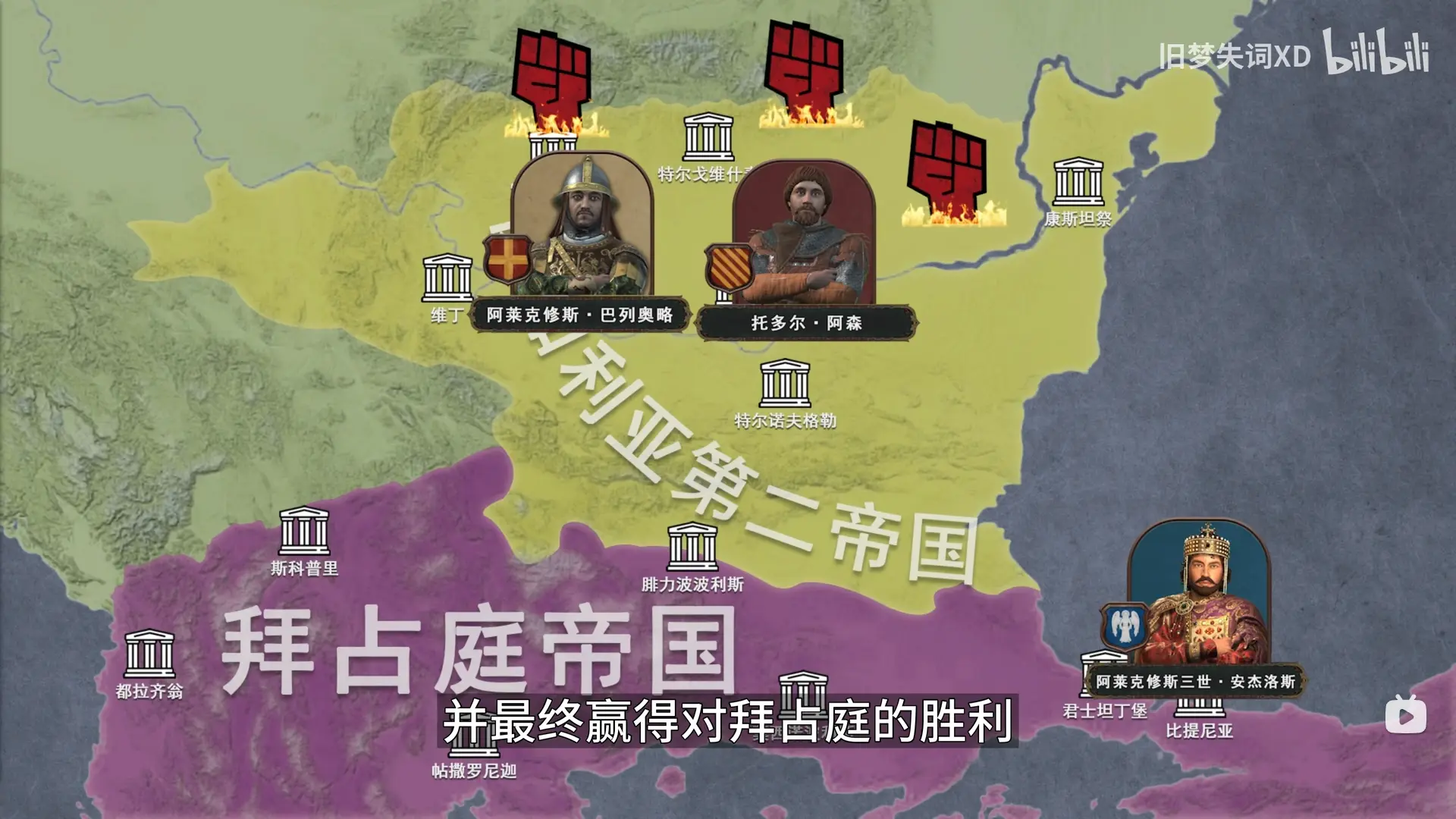 相信有細心的觀衆在遊玩巴列奧略家族的時候還發現了“大都督”有一位同輩的堂兄弟也叫阿萊克修斯。與“大都督”較少的記載相比,這位阿萊克修斯的記載多得多,同時也是巴列奧略家通往權力之路的一個重要推手。他在歷史中的稱號爲“專制公”(despot)阿萊克修斯。