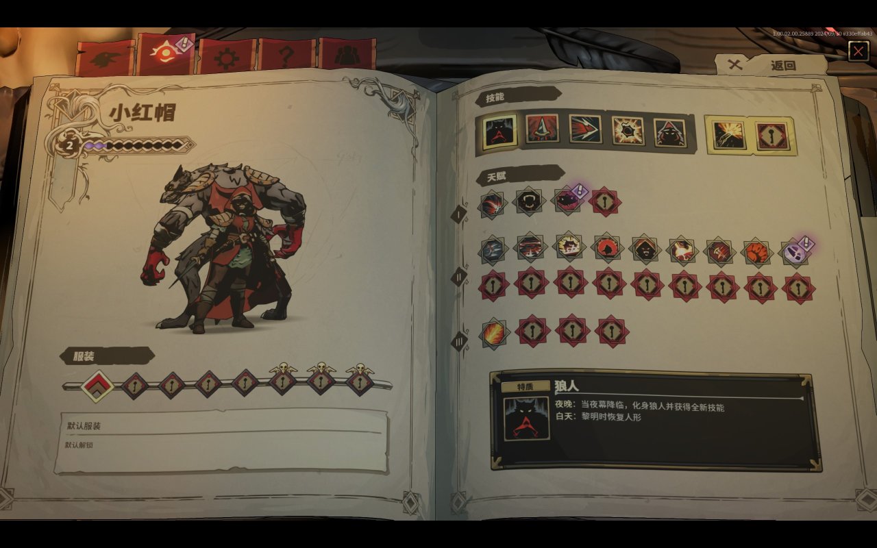 其一,是多角色設計。在遊戲中存在「白天/黑夜」的設定,而我們的首位主角是小紅帽,一到晚上當然是要變身成狼人了!當化身狼人時不僅有全新的技能組,超模的數值也讓小紅帽從一個弱雞變成了無敵狂戰士——最關鍵的一點在於,像這麼機制獨特的角色還有八個。並且大家都共用一個黑暗童話世界觀,例如黑化的白雪皇后、墮落的猴王悟空等等,既充滿着哥特式的獵奇設定,也極大增加了遊戲的內容豐富度。
