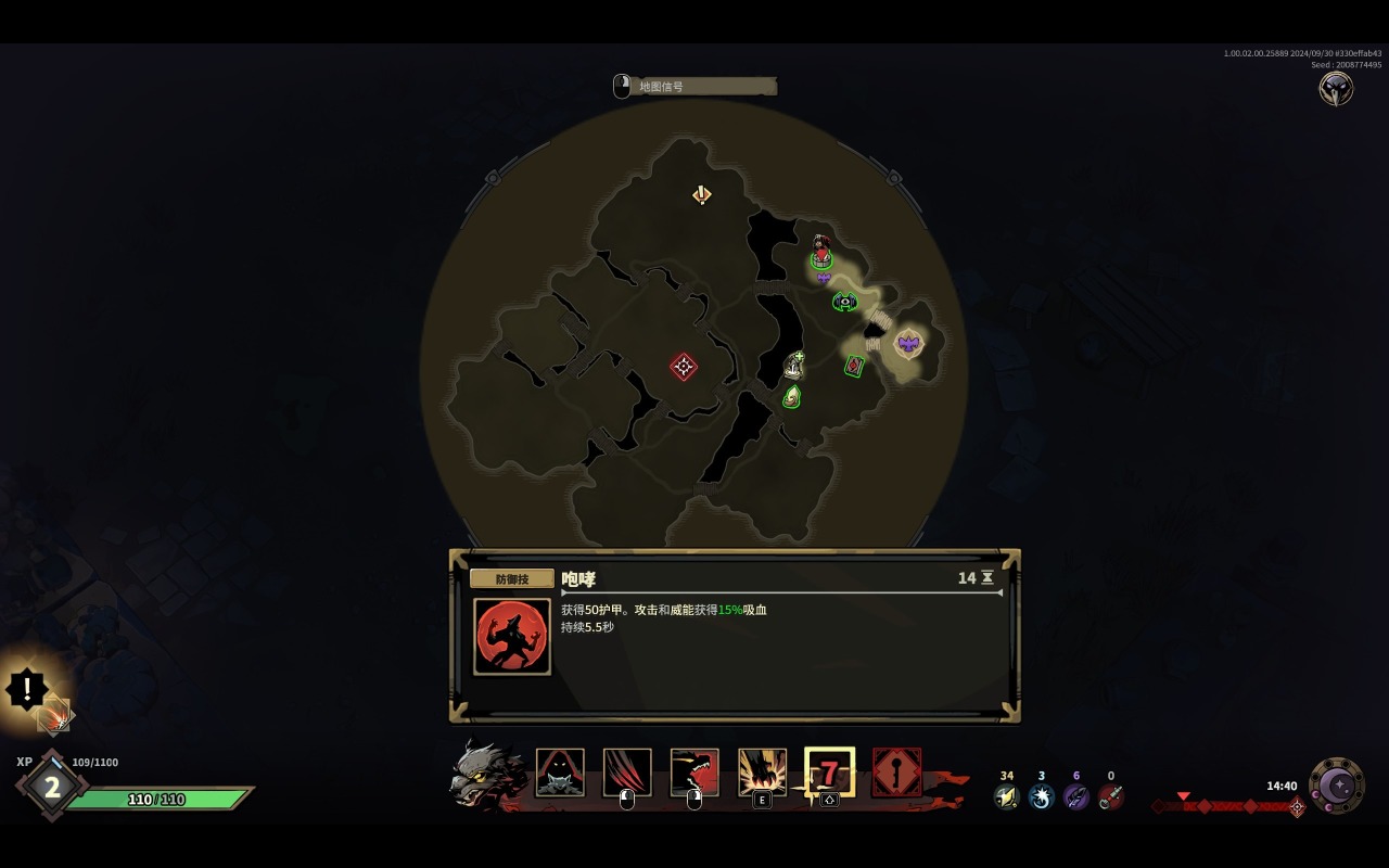 另一方面,相較於傳統的「哈迪斯式選關」,我認爲本作在流程設計上是非常大膽地:用了一張RPG遊戲裏常見的地圖,把各個強化資源點都散佈在其中,未探索的部分則鋪上戰爭迷霧。這讓玩家能提前獲知接下來的強化資源,對於資源管理能夠有一個全局規劃,在海量的“哈迪斯三選一”中,本作用小地圖來管理探索進程絕對能帶來不少新鮮感。