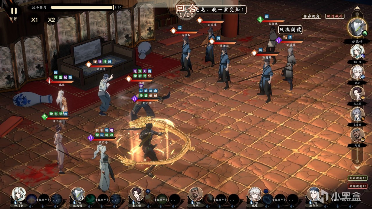 既然是一款战略游戏,那战斗就是必不可少的。游戏采用ATB模式进行回合制战斗,每个角色根据其速度属性,在行动条中的位置是不同的(类似于阴阳师)。通过释放基础技能来获得内力,从而释放更强大的功法。