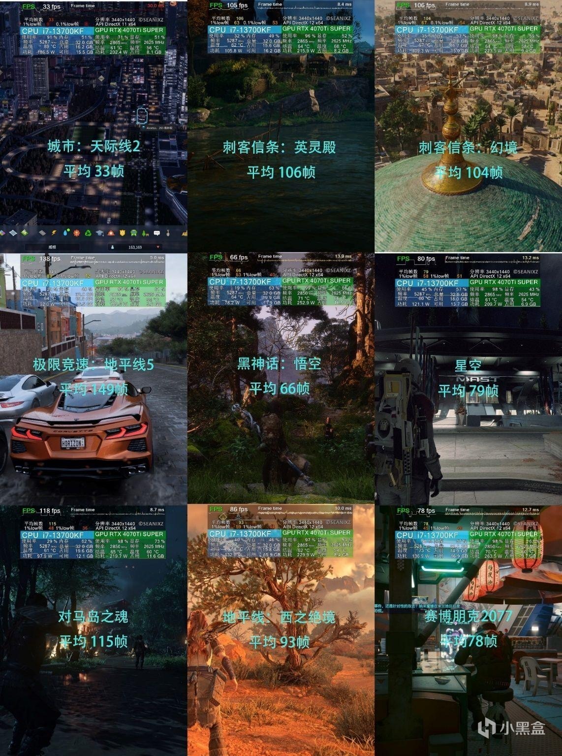 实际游戏表现如上,手头没有4K显示器,测试的34寸带鱼屏3440×1440分辨率下画质最高+光追+DLSS,均为达到畅玩的水准,可以很好的应对本世代以及次世代3A游戏需求了。