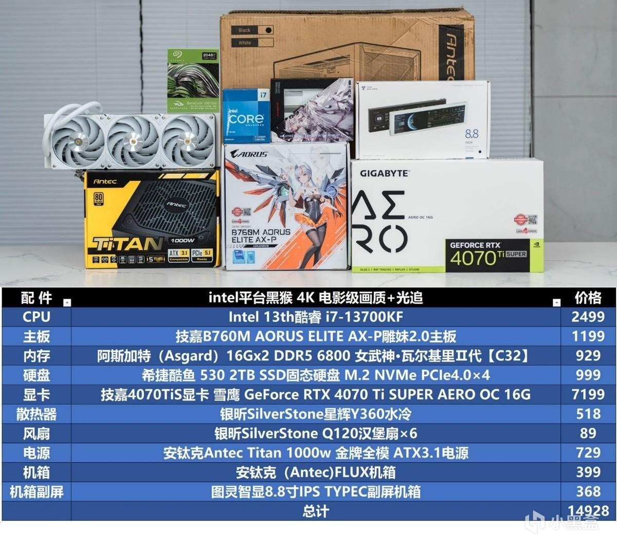 显卡是技嘉4070TiS显卡 雪鹰 GeForce RTX 4070 Ti SUPER AERO OC 16G,4K画质全开+光追畅玩的守门型号了,价位和7900XTX差不多但它可以开光追还可以玩玩AI,对新游戏技术支持性更好,各类游戏也能拉满流畅运行。