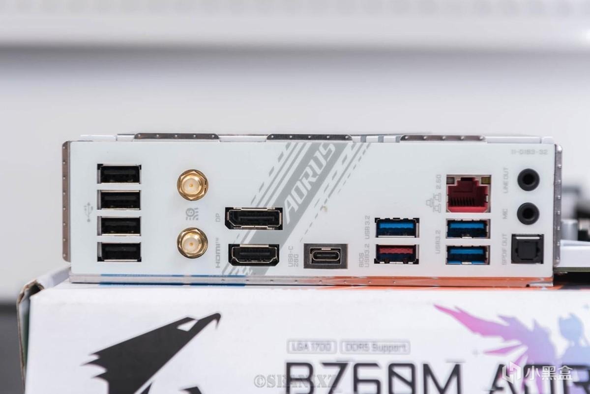 后置I/O接口部分给到了9个USB接口,其中一个为20Gbps的USB 3.2 Gen 2x2 Type-C接口。特别配备了HDMI 2.0、DP 1.2双视频输出端口,原生支持4K@60Hz视频输出。