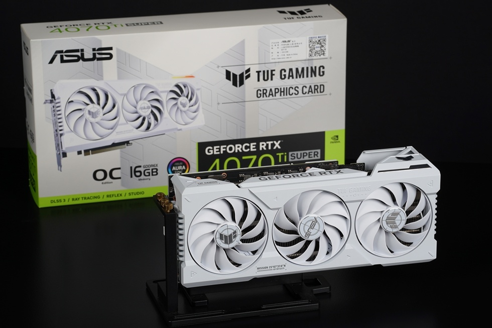 显卡来自华硕 TUF 4070Ti SUPER O16G WHITE,包装采用TUF电竞风格设计。
