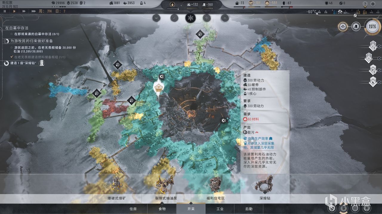 通過將建造在物資資源點的生產單位進行塑形與擴張,從而實現樞紐建築Buff加成的最大化成了每個高玩在遊戲後期的必修課。一方面要讓建築物足夠緊密以實現空間最大化利用,一方面還得儘可能讓以居住爲目的的建築物離能量塔更近從而保證必要的供暖,同時還不能忘了將生產建築與居住建築涇渭分明從而避免患病率上升……