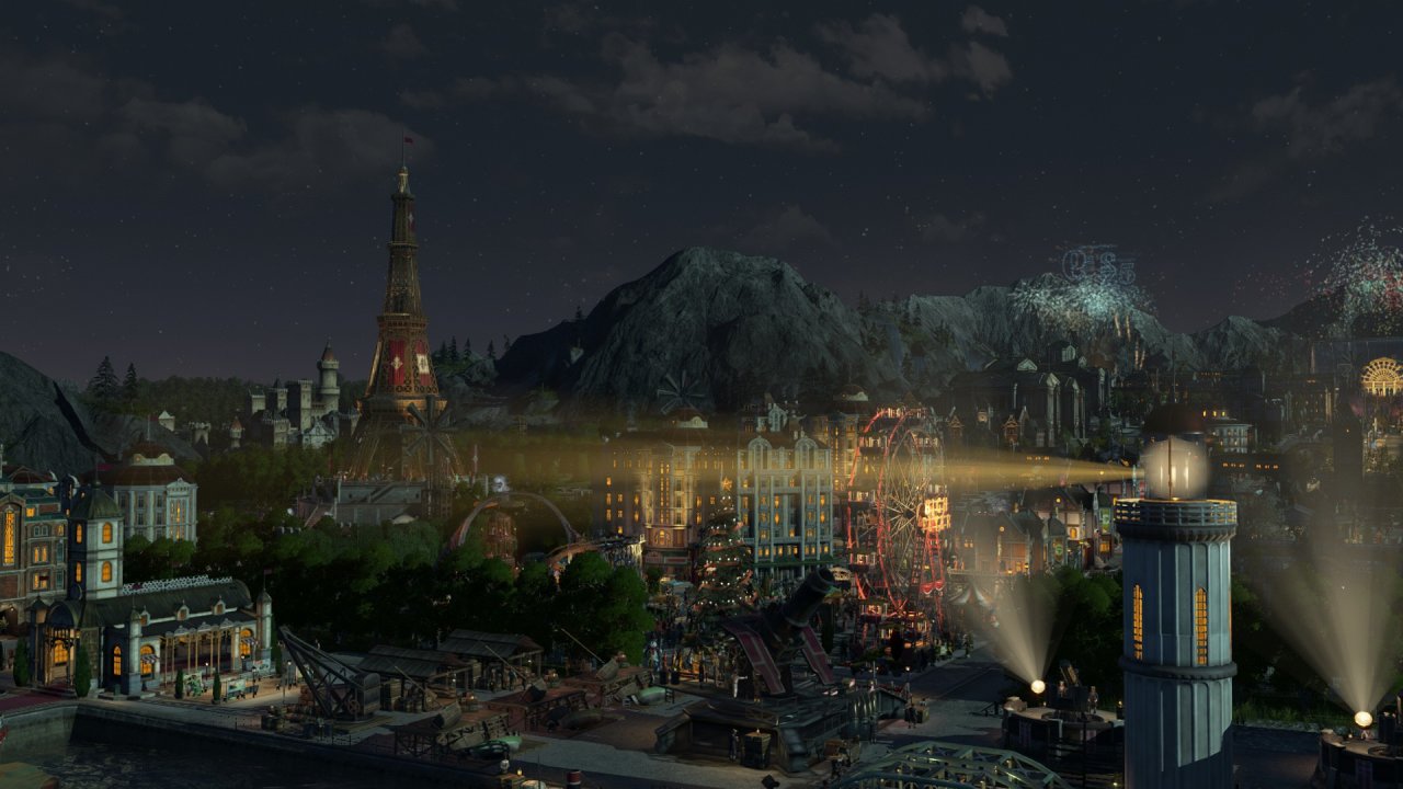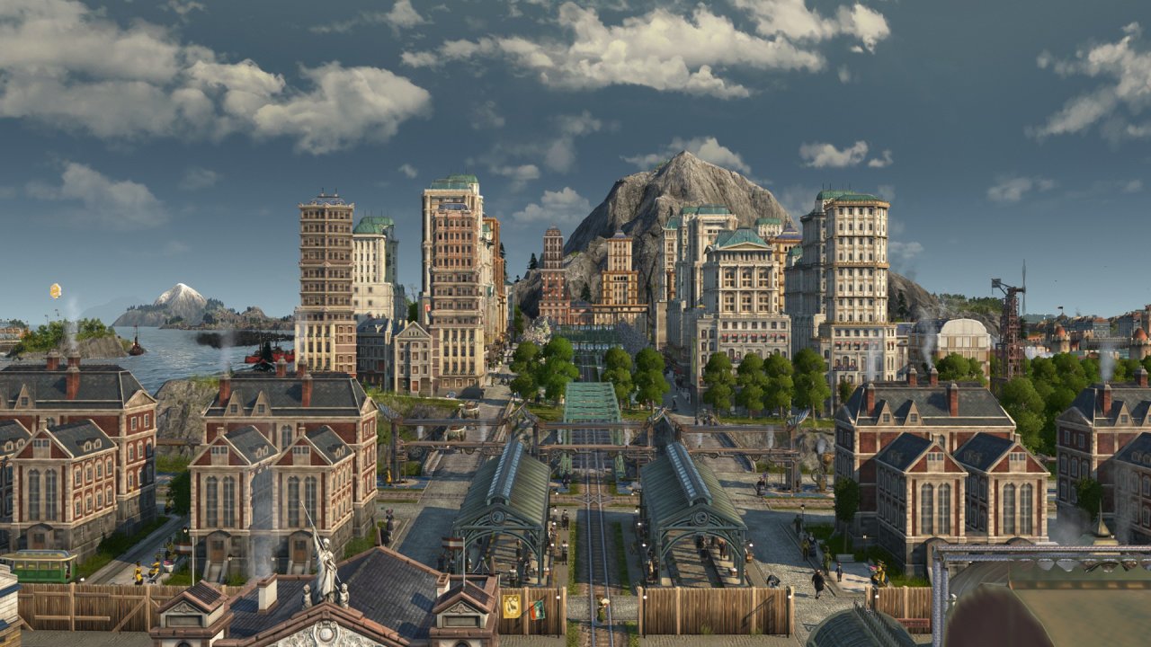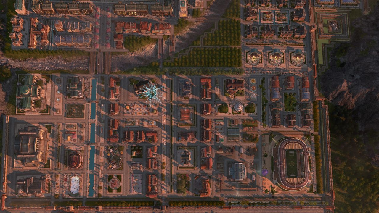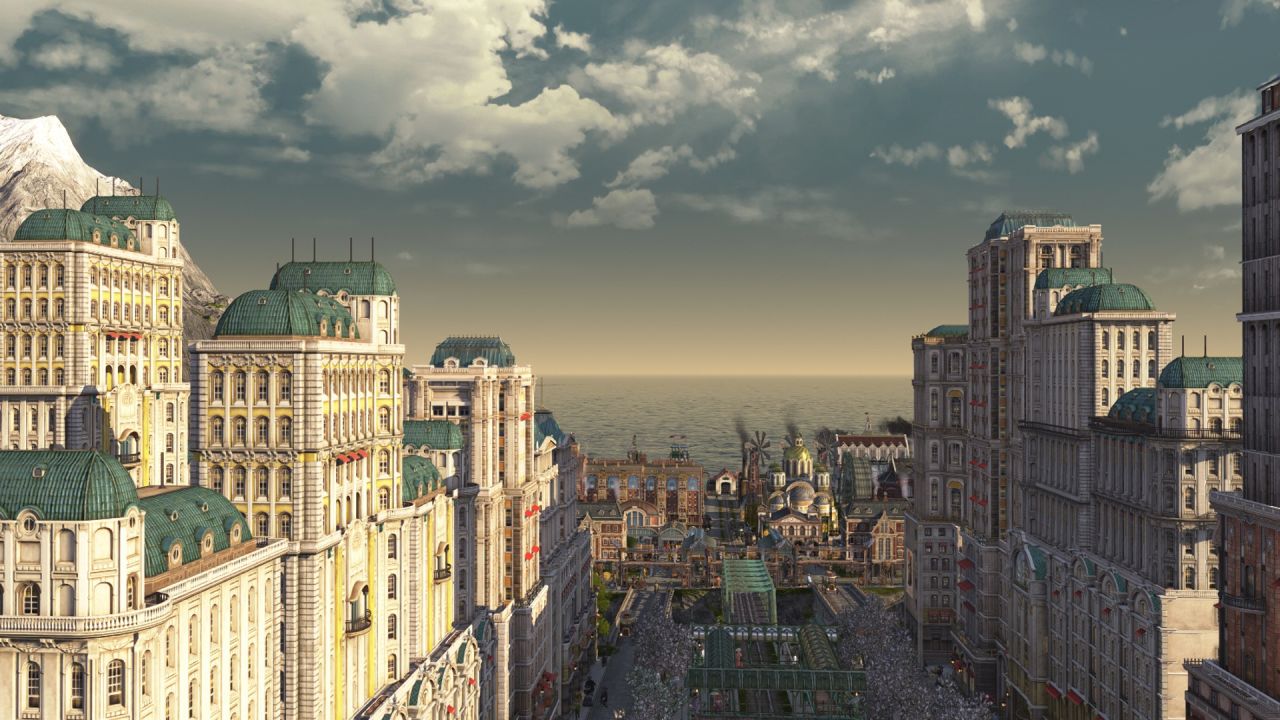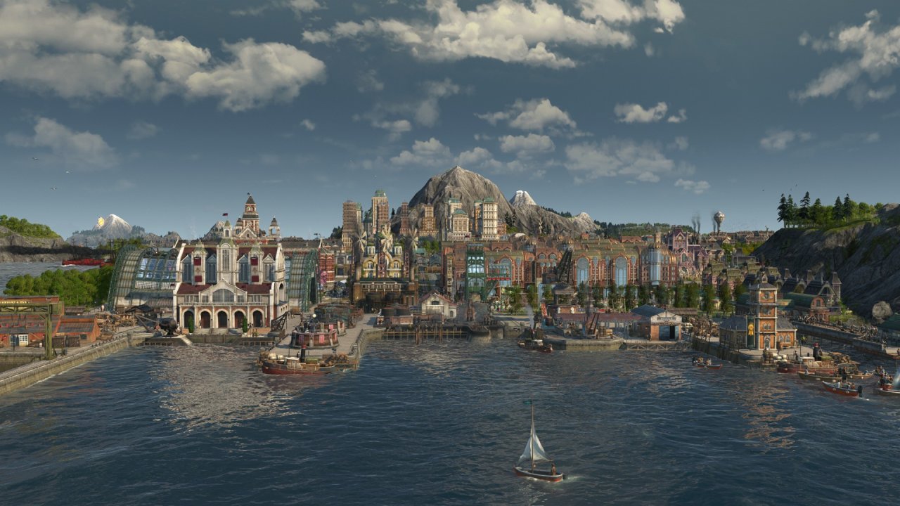 受限於視角不能涵蓋整個海島,上圖主要包含以工匠住所爲主的舊城區(紅色房屋),依世博館而建的展會區(青色房屋),王室所在地(黑色房屋),天涯(左側摩天大樓),貨運港區(左下朋克風房屋)以及一些過渡區域,統合爲海島主要的住宅區,在此之外的地方大部分是景點及小部分生產線,下面我將按區域逐一介紹。