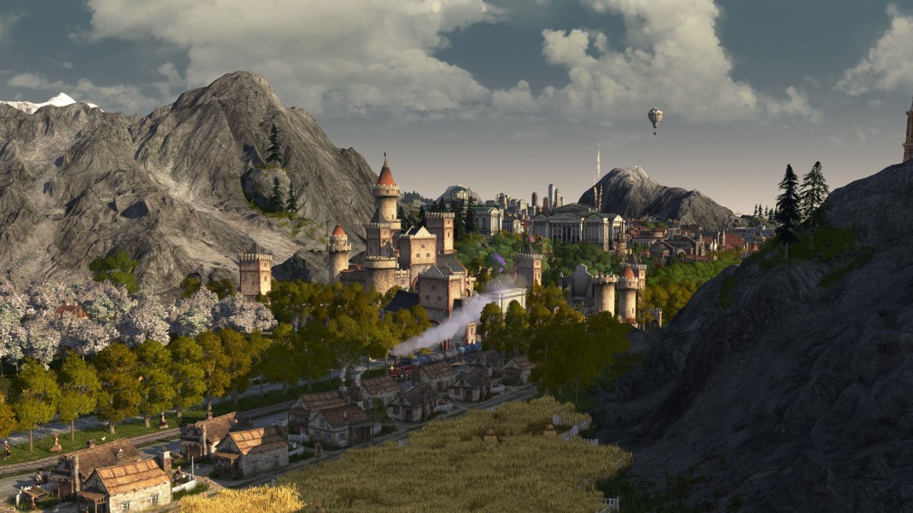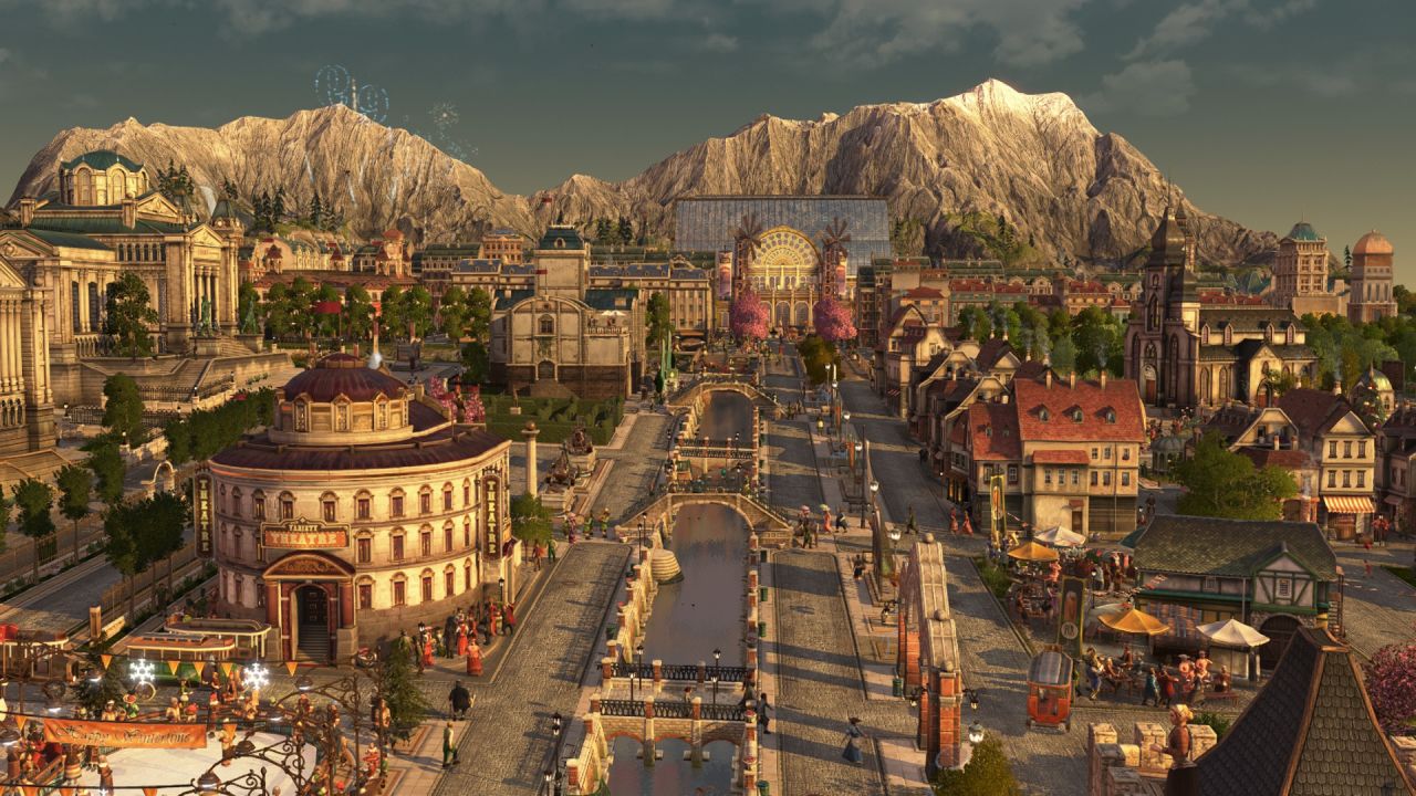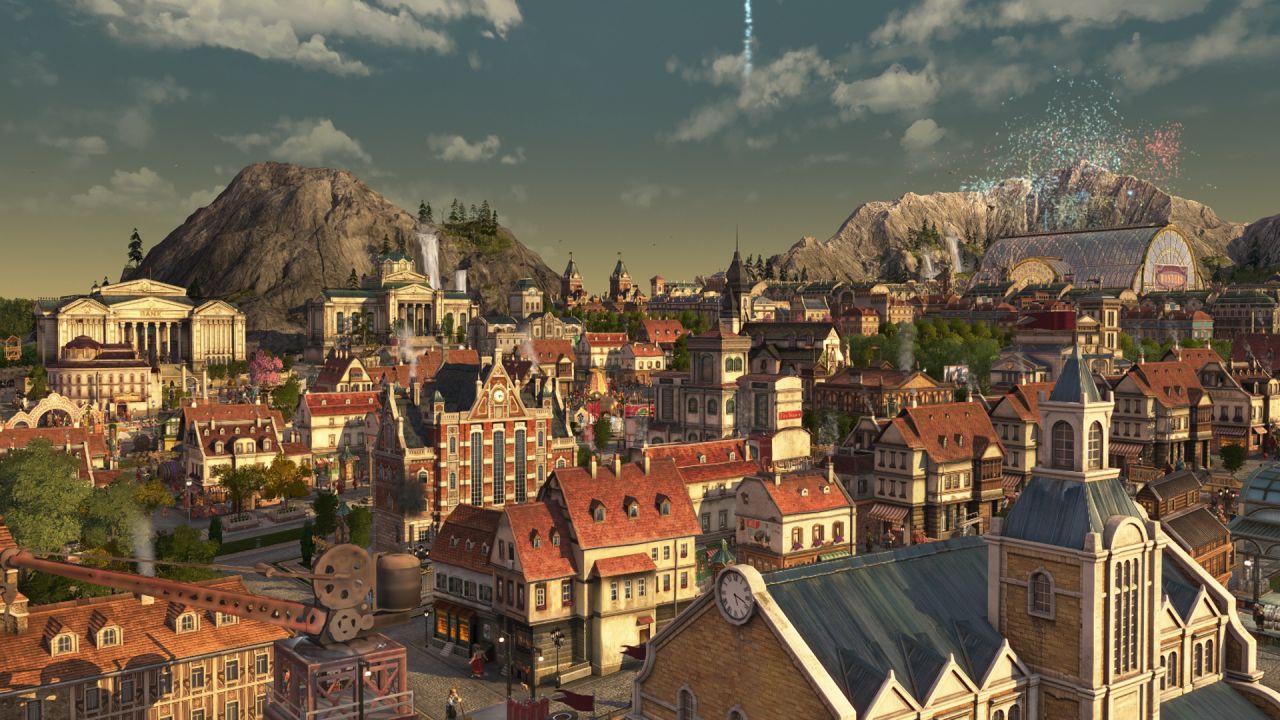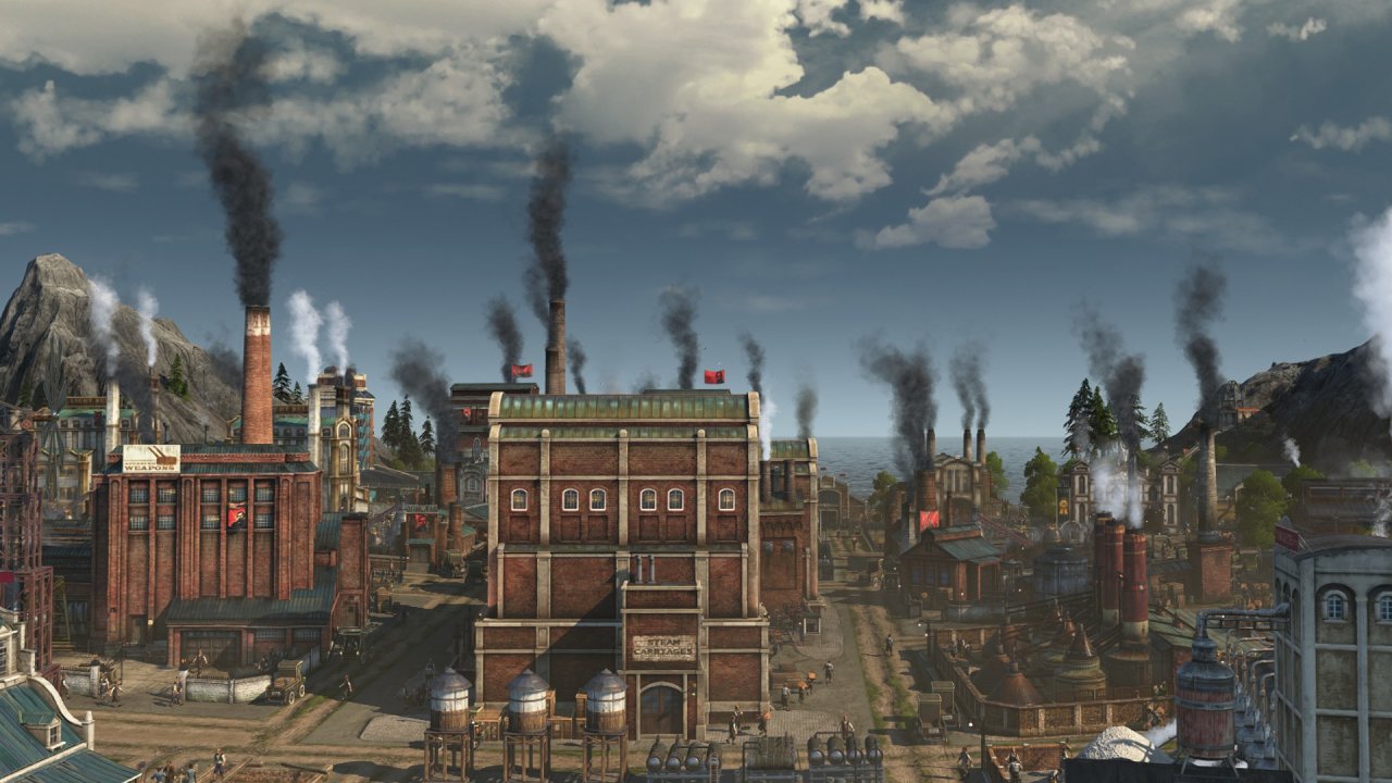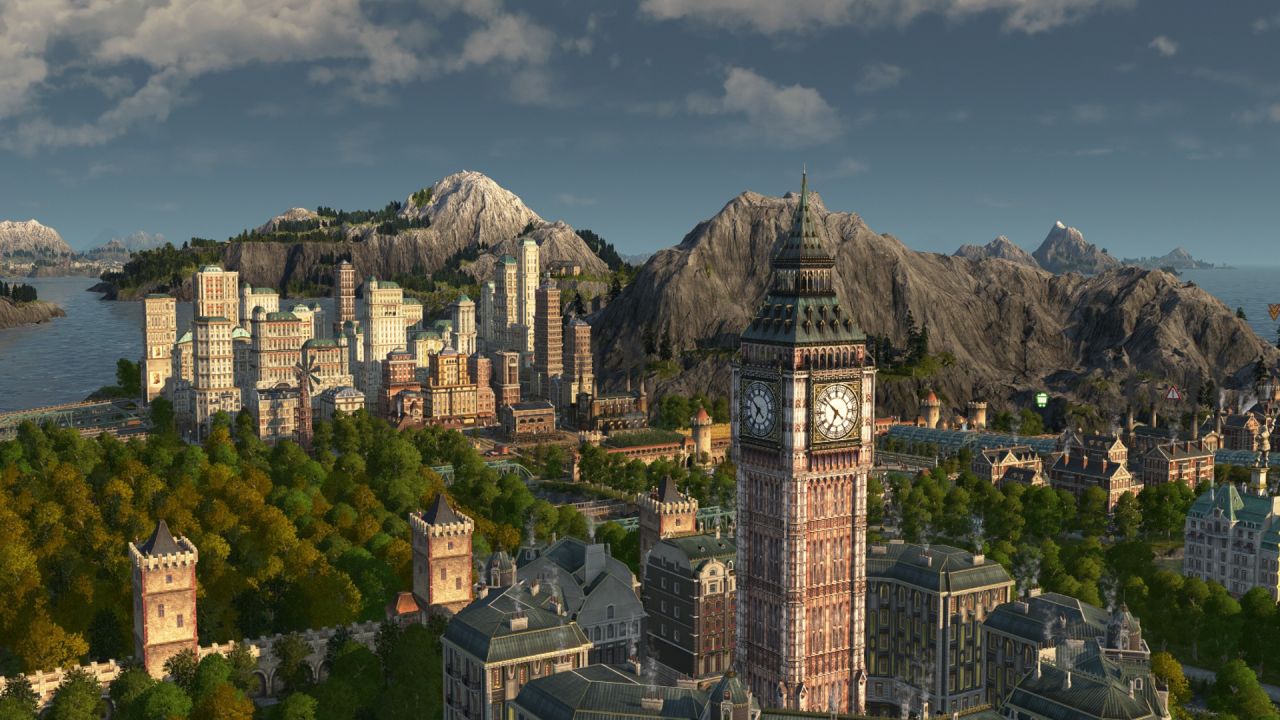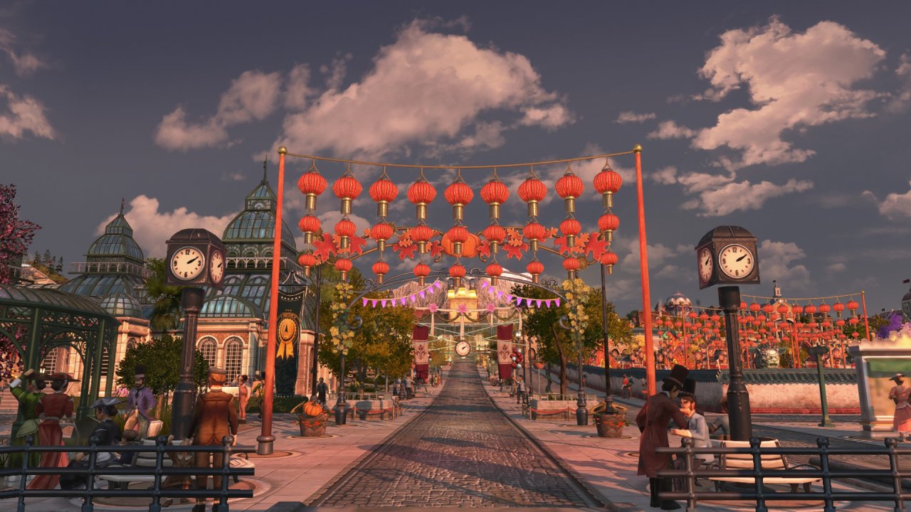 受限於視角不能涵蓋整個海島,上圖主要包含以工匠住所爲主的舊城區(紅色房屋),依世博館而建的展會區(青色房屋),王室所在地(黑色房屋),天涯(左側摩天大樓),貨運港區(左下朋克風房屋)以及一些過渡區域,統合爲海島主要的住宅區,在此之外的地方大部分是景點及小部分生產線,下面我將按區域逐一介紹。