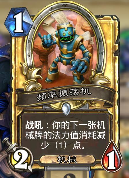 上面兩張爲必留卡,起手有頻率振盪機的情況下就把其他兩張牌換掉去找一個優質三費機械,如米米爾隆 蛛型機 青銅門衛,減費後二費直接下,站住場三費再貼一個磁力對面基本就解不掉了,松鼠一定不要裸下,最好也別先貼松鼠,非常容易被解,先手同理。