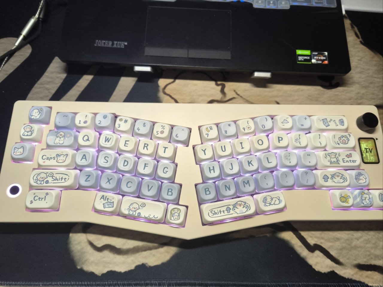 刷视频,偶然看见分裂键盘,挑挑拣拣,稳妥起见,选了入门款的赤度alice。也猜想所谓人体工学是不是仅为噱头,但还是下单了,还找人调了内胆填充,图一个声音更好听吧。把之前的键帽搭配在上面,感觉还行。随后停止购入了一段时间,因为没钱了...