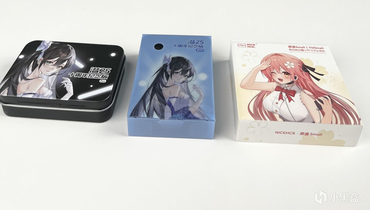 二次元包装虽迟但到,很美丽的老婆酱!普通版外包装为一个塑料盒,天蓝色,正面是二次元人物,上方是品牌型号logo——“潜25十周年纪念版”,背面是对应的参数信息和频响曲线。
