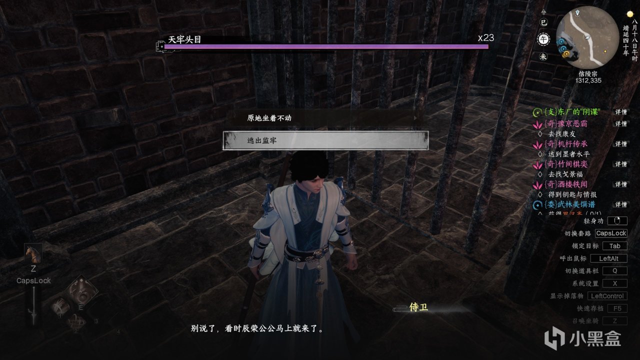 在得知是官差在難爲路邊商戶時,我們出手相助,擊敗官差後會被毒煙迷暈關進了地牢。這時選擇逃離地牢,擊敗地牢頭目和一些小嘍囉後我們便可以走往上的樓梯離開地牢。(PS:地牢走往下的樓梯還會有兩個支線,感興趣的也可以去看看)