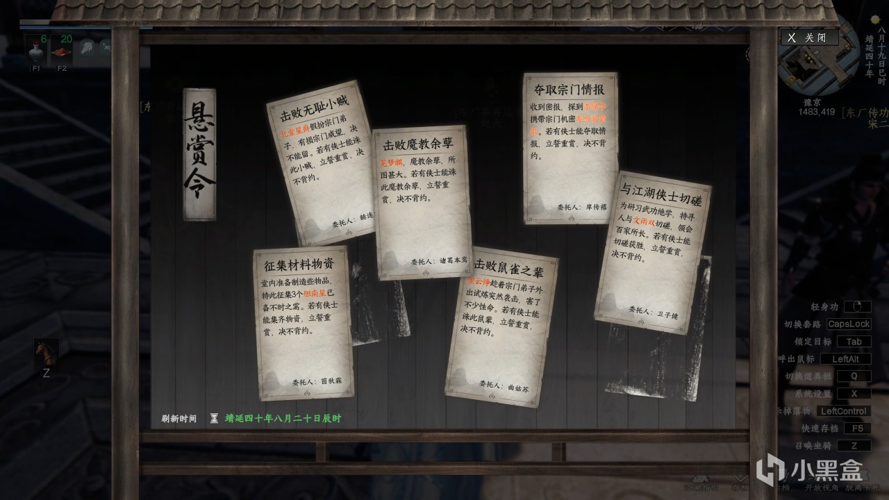 回到東廠懸賞榜已經刷新了,我們再繼續接受所有懸賞並交付,這時候找曹公公便可以選擇晉升掌幫。