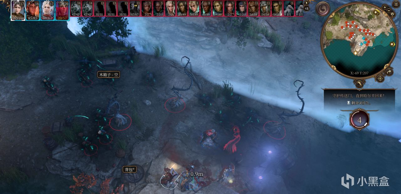 405.1哈爾辛會告訴我們他要前往暗影之地,尋找賽尼爾,此時任務要求我們保護傳送陣(70多血),保護五個回合即成功,這裏不要在對話哈爾辛了,先提前準備