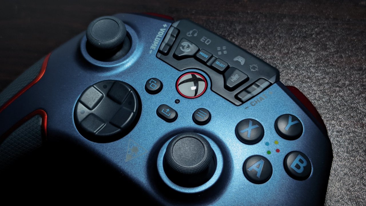 一个碳膜摇杆,布局方面是和Xbox手柄一致的,但在其上多了一排乌龟海岸拿手的玩意——声音调节