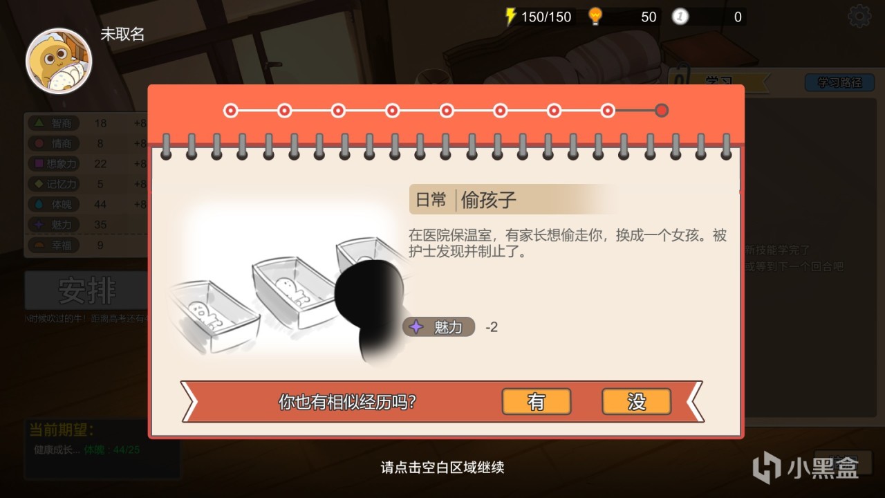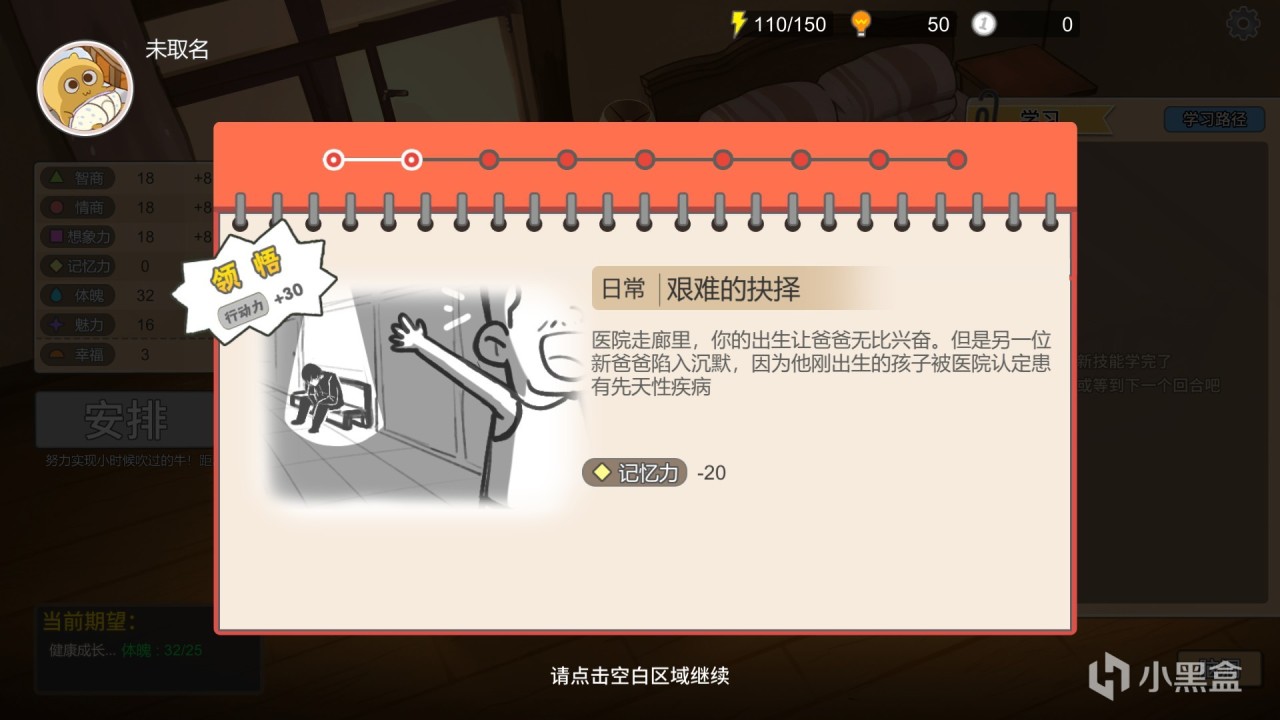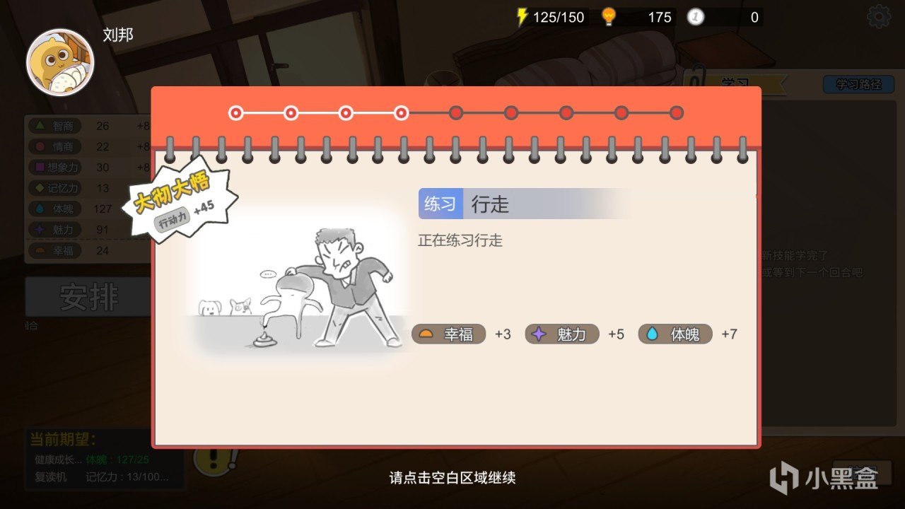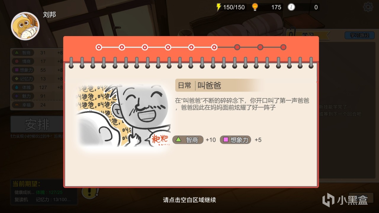 學習,索取,商店玩法:在開局,玩家只有兩個日程安排,分別是跟音樂拍手,爬行,雖然隨着回合數的推進,玩家會獲得一些新安排,但給的數值獎勵實在是不敢恭維,所以玩家需要花費“悟性”去學習更多課程和技能,並且這些課程