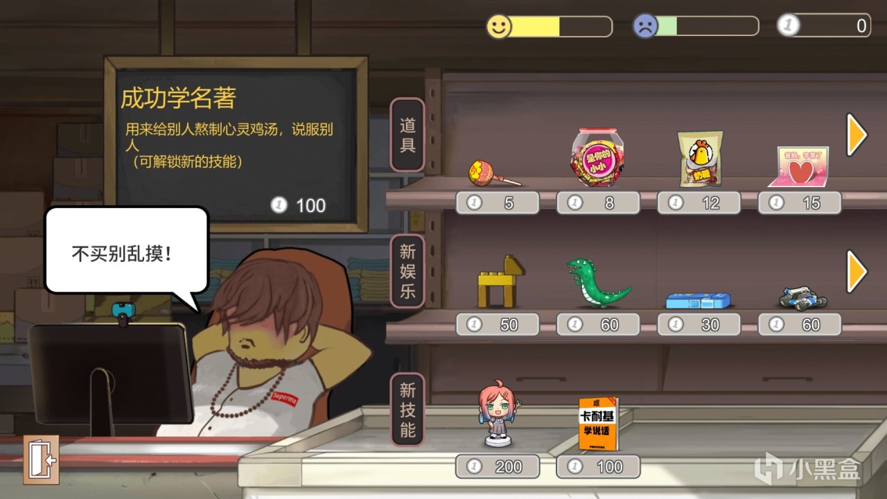 最後一種獲取技能的方法則來自於商店,到了遊戲前中期,玩家會自動解鎖商店,並且父母會定期給零花錢(父母職業不同,給的錢也會不同),當然玩家也可以通過勞動獲取零花錢,來購買自己想要的物品。