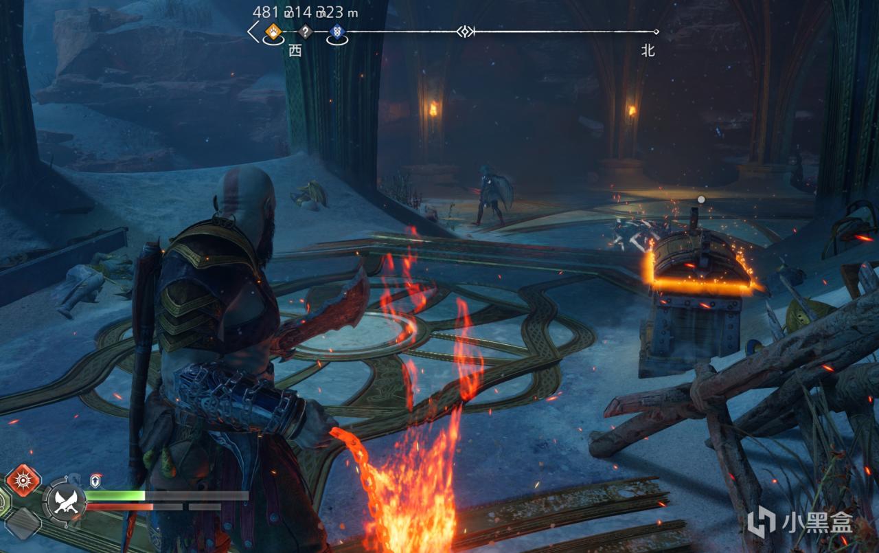 1.使用利維坦戰斧遠程投擲,通過擊打擺錘來選擇正確的北歐神話字符,三個符號全部正確,寶箱開啓;
