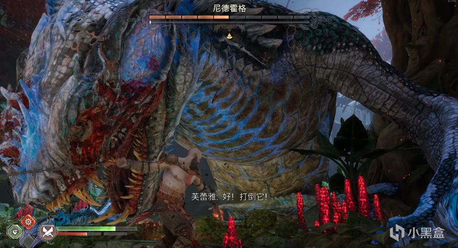 由於對上一部作品的劇情知之甚少,所以筆者在開玩之前特意去觀看了一下“前情提要”,感興趣得朋友也可以上網查閱相關資料。這點很重要,否則我不會知道爲何開篇的女人芙蕾雅會發了瘋般地向父子二人展開進攻,也不會明白“洛基”這個稱呼的由來...