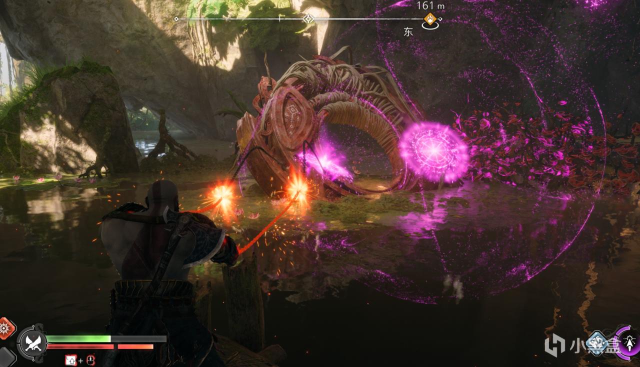 BOSS戰:大大小小得BOSS戰一直充斥在奎託斯父子二人得冒險之途中。人形、獸型,包括神祗,每個BOSS都有其特性。玩家需要仔細觀察它們得出招動作、技能種類,在合適得時機進行攻擊/防守/閃避。這裏偶爾也要運用到環境因素,當BOSS爬上柱體、岩石等高處位置時,奎託斯要巧用同伴魔法箭矢的作用,將敵人的棲身之地打碎,使其重回地表。