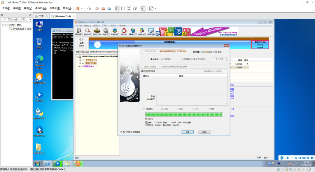 之後啓動diskgenius,將E盤打包爲一個鏡像文件……將系統當前情況保存快照。