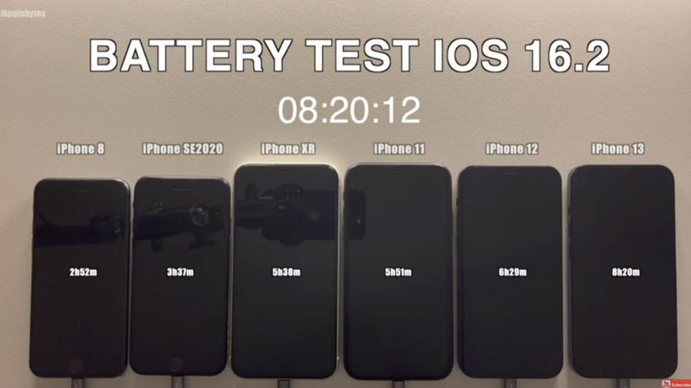 最後的 iPhone 13 更達到 8 小時 20 分鐘,這續航力蠻驚人的: