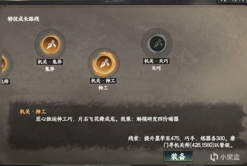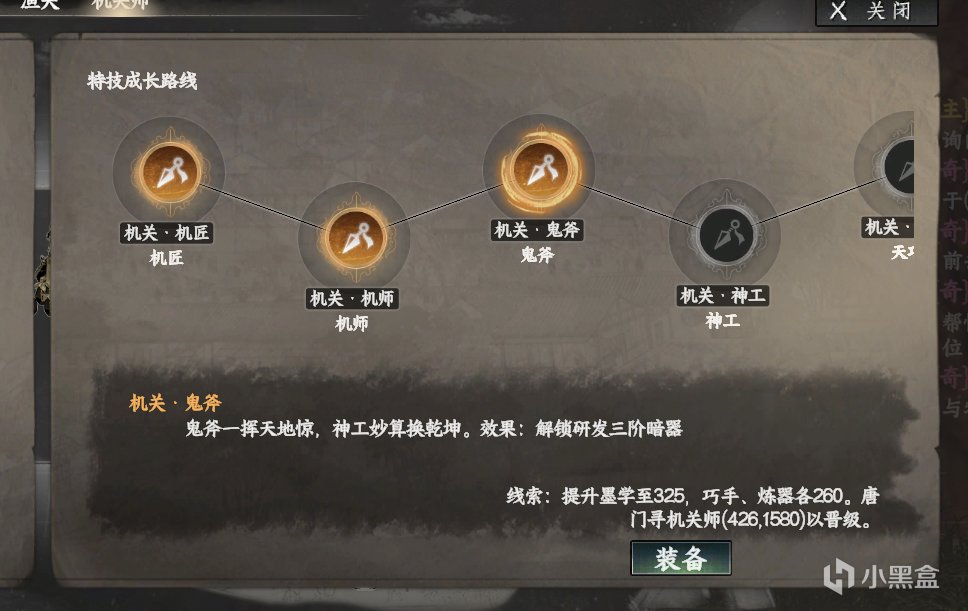 當我們的墨學達到了325,另外兩個屬性達到260的時候,依舊是找到唐儒進行升級,不過這一次並未觸發其他的任務了,非常簡單就升級爲鬼斧了。