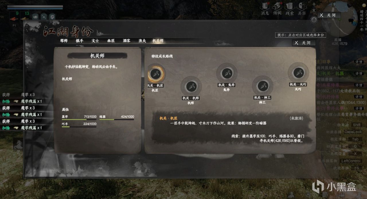 首先想要成爲機關師,我們的學識必須要跟得上,我們可以前往枰櫨北(949.902)處尋找到書畫商,它這裏會售賣各種學識殘卷