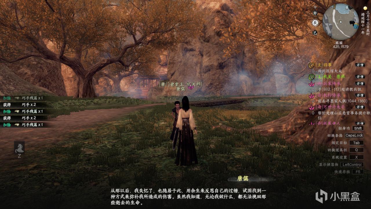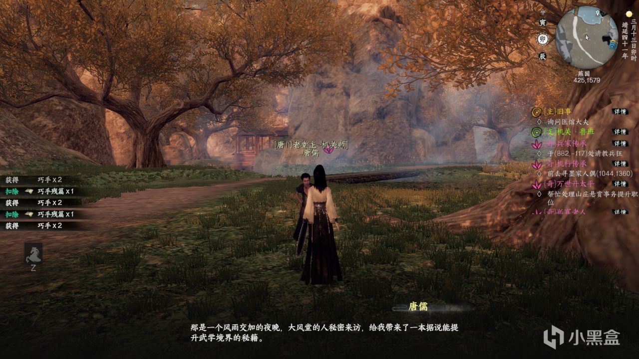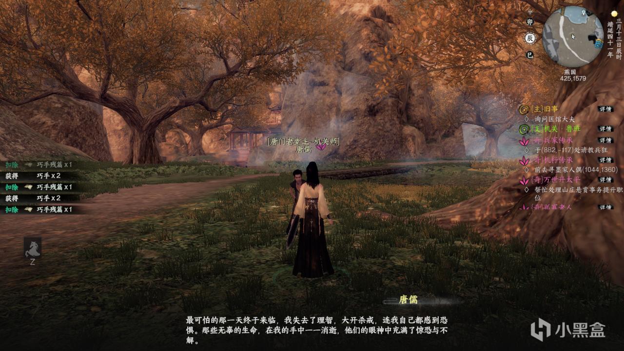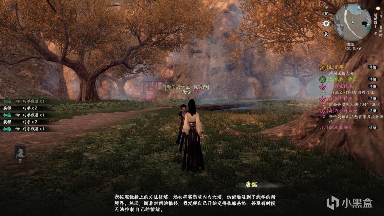當我們三個屬性都達到50點之後,就可以前往唐門了,在唐門的門口(426.1579)處,可以尋找到唐門的老唐主:唐儒,我們也將要在他的帶領之下成爲機關師。