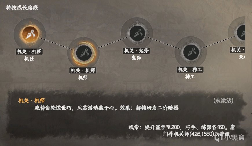 當我們的墨學200,巧手和煉器都到160之後,就可以去找唐儒接受機師的升級任務了。
