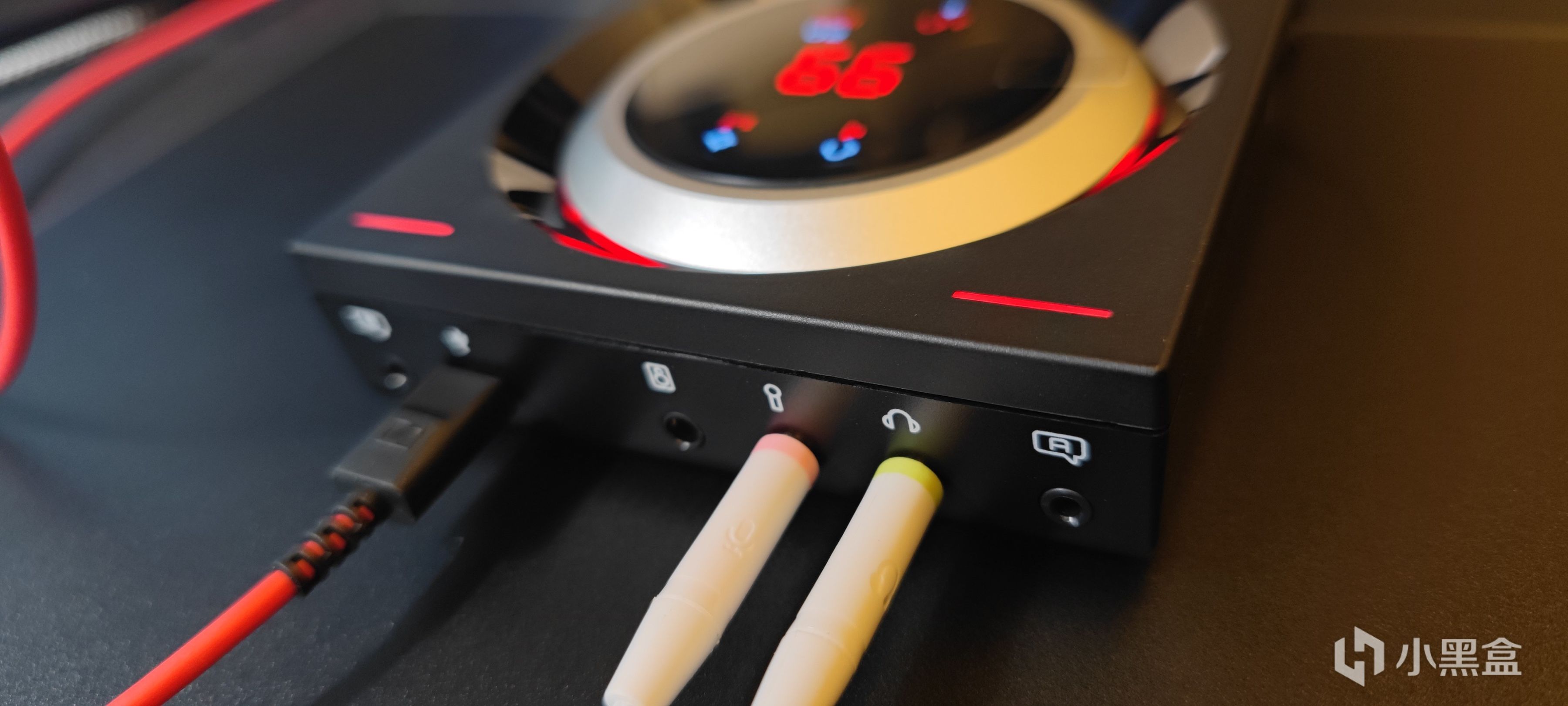 背面的接口,H6PRO封闭式买了白色的,所以线也跟着配了白色的。