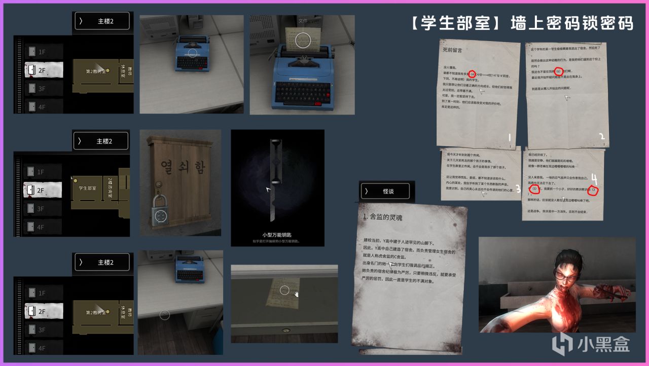 主樓2:2F【第二教務室】插入打字機按鍵 傳聞 【死前留言】 密碼隨機遇