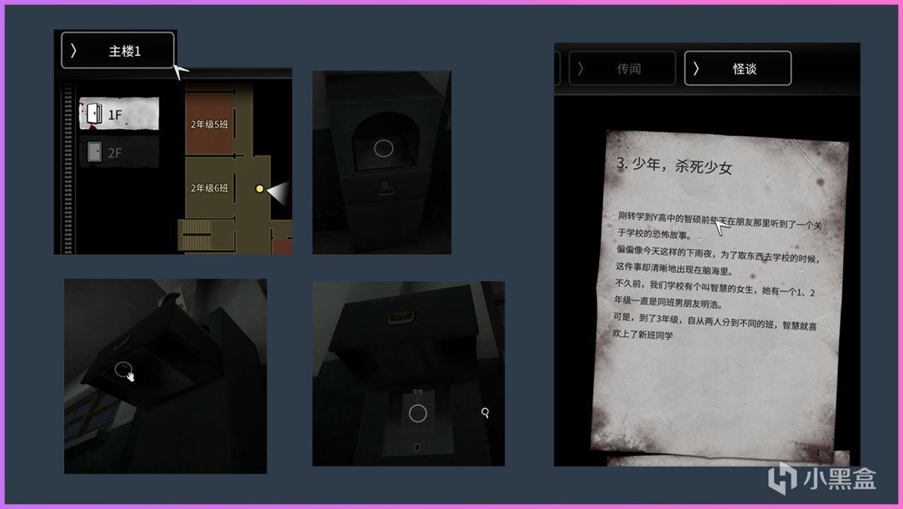 主樓1:1F 2-6教室前垃圾桶的抽屜下方 怪談【少年,殺死少女】