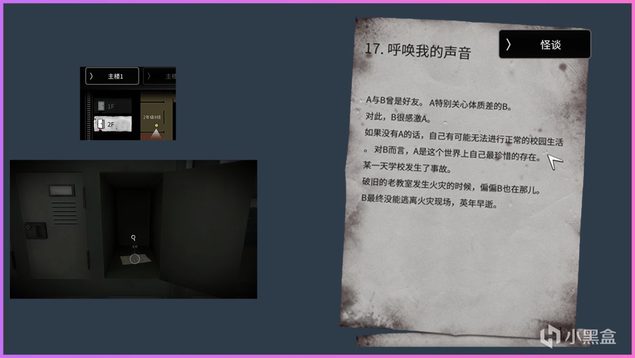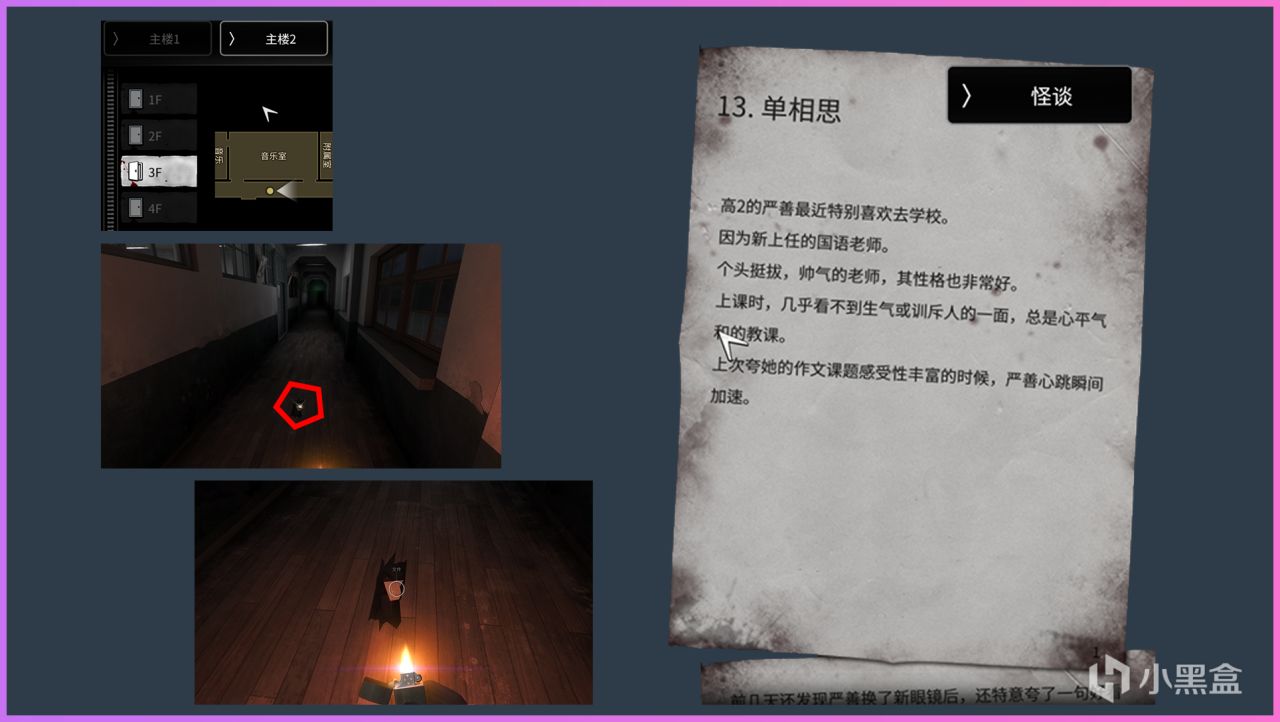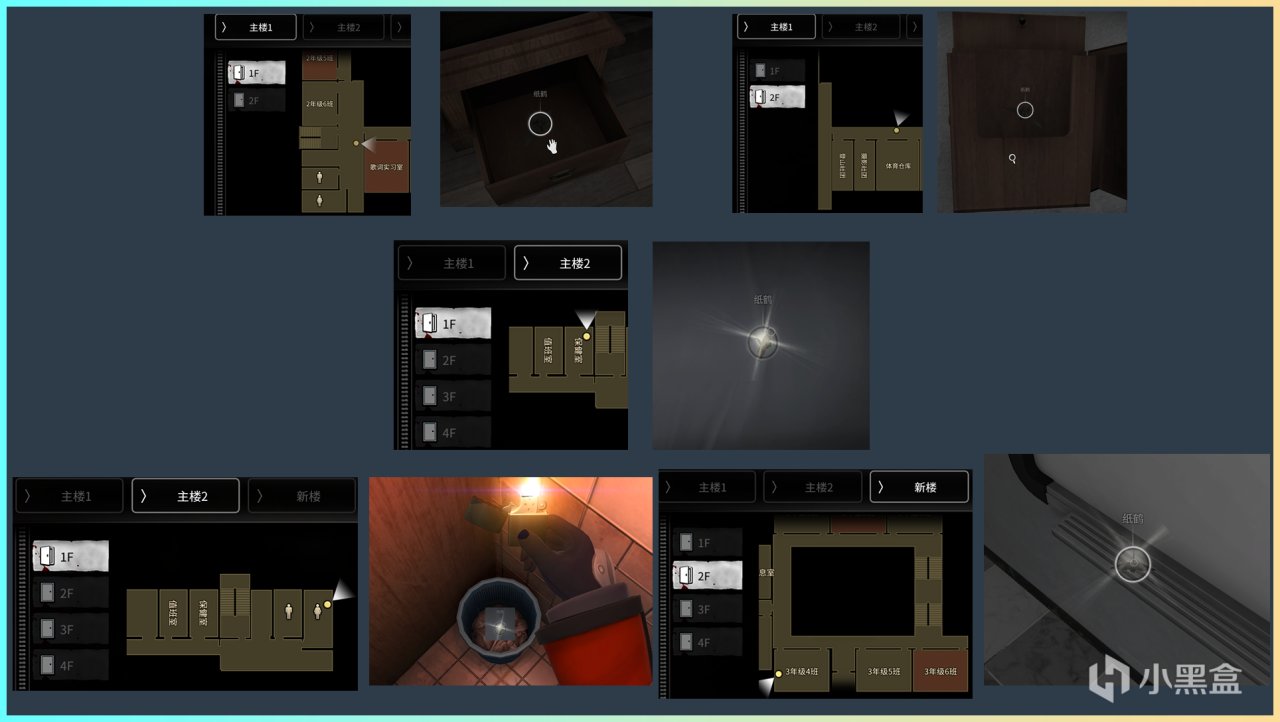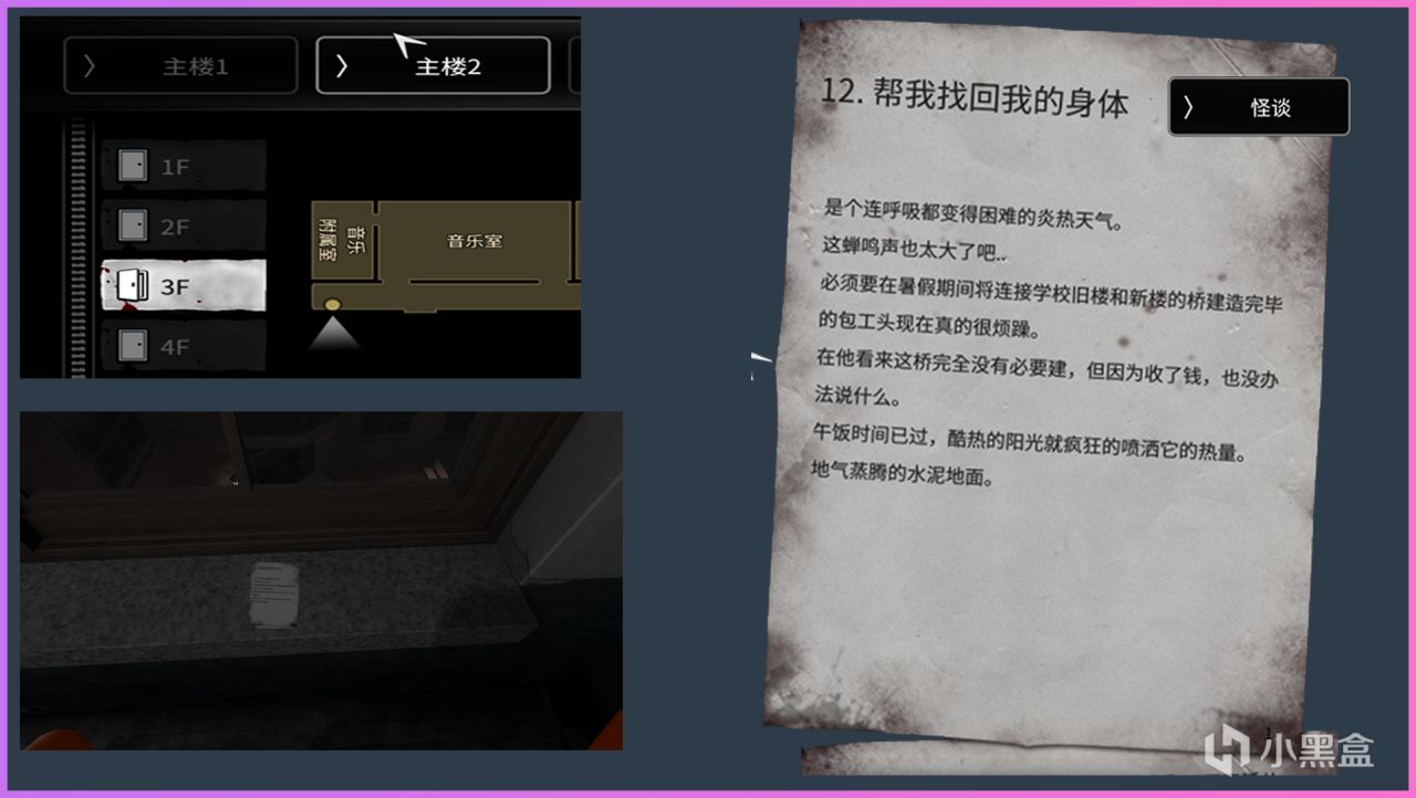 主樓1:地圖上方樓梯2F往3F的樓梯間地上拿到告白信