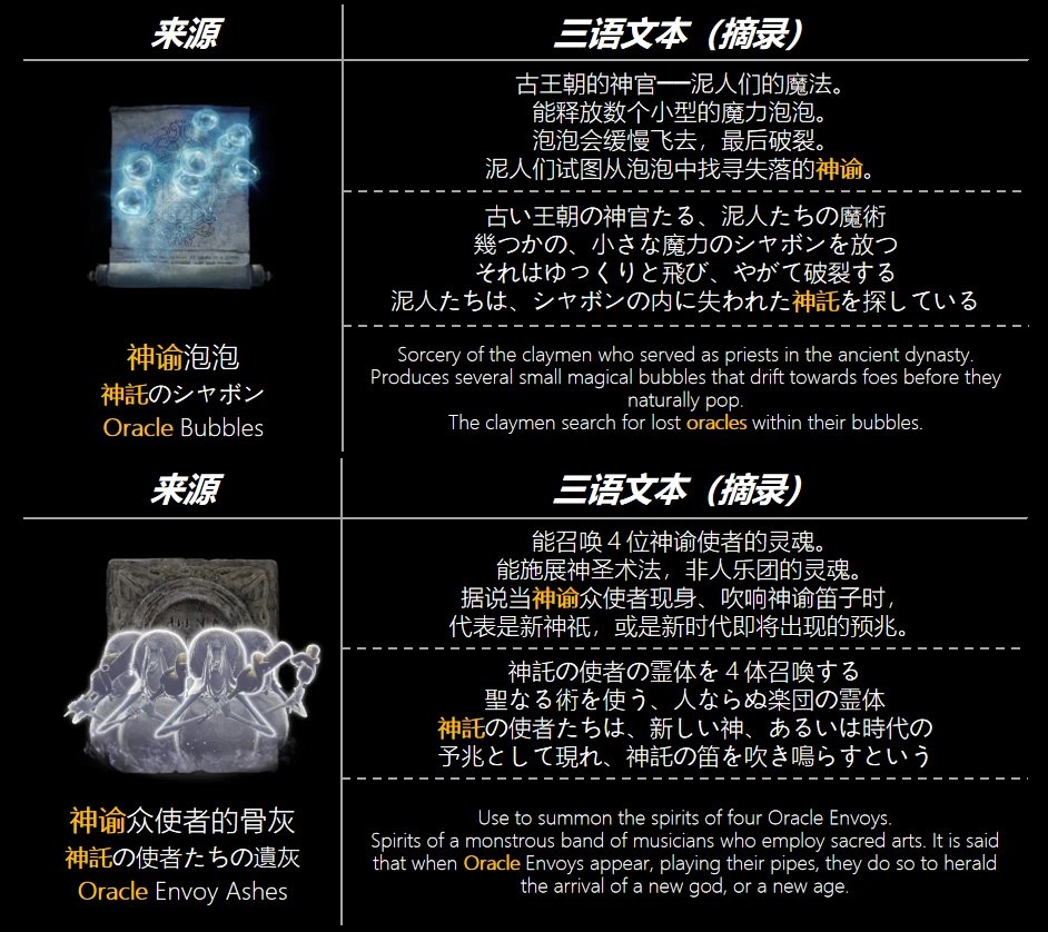 泥人和神諭使者所吹出的“泡泡”可能性質不同,但目的卻相同:尋找並迎接神諭。其中,神諭(神託、Oracle)這一特殊的專有詞只在這兩種生物的文本中出現。