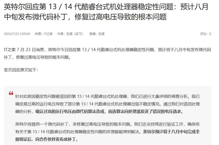 英特尔13、14代因为出场预设太高而爆发稳定性问题