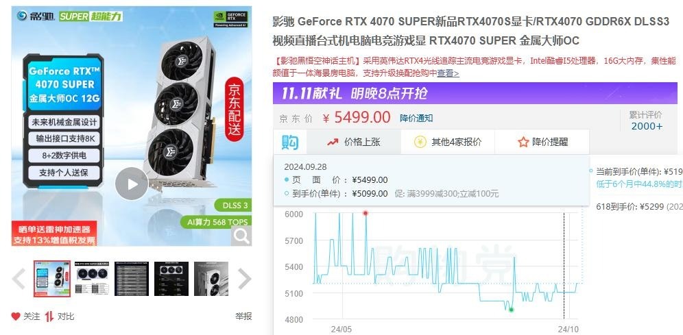 换成二线品牌、影驰主力型号——金属大师,到手价格5099元: