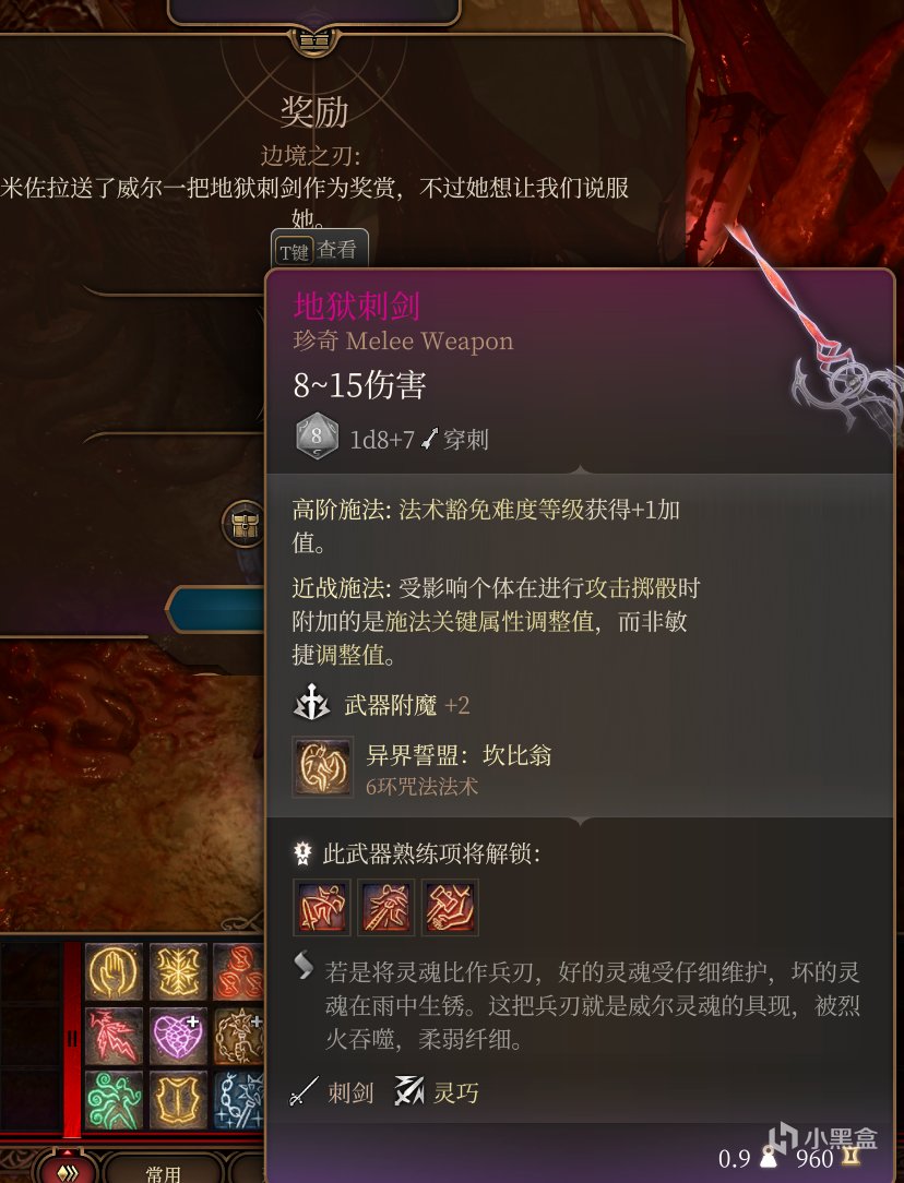 解救后一定要游说,而且一定要携带威尔,对话获得地狱刺剑!