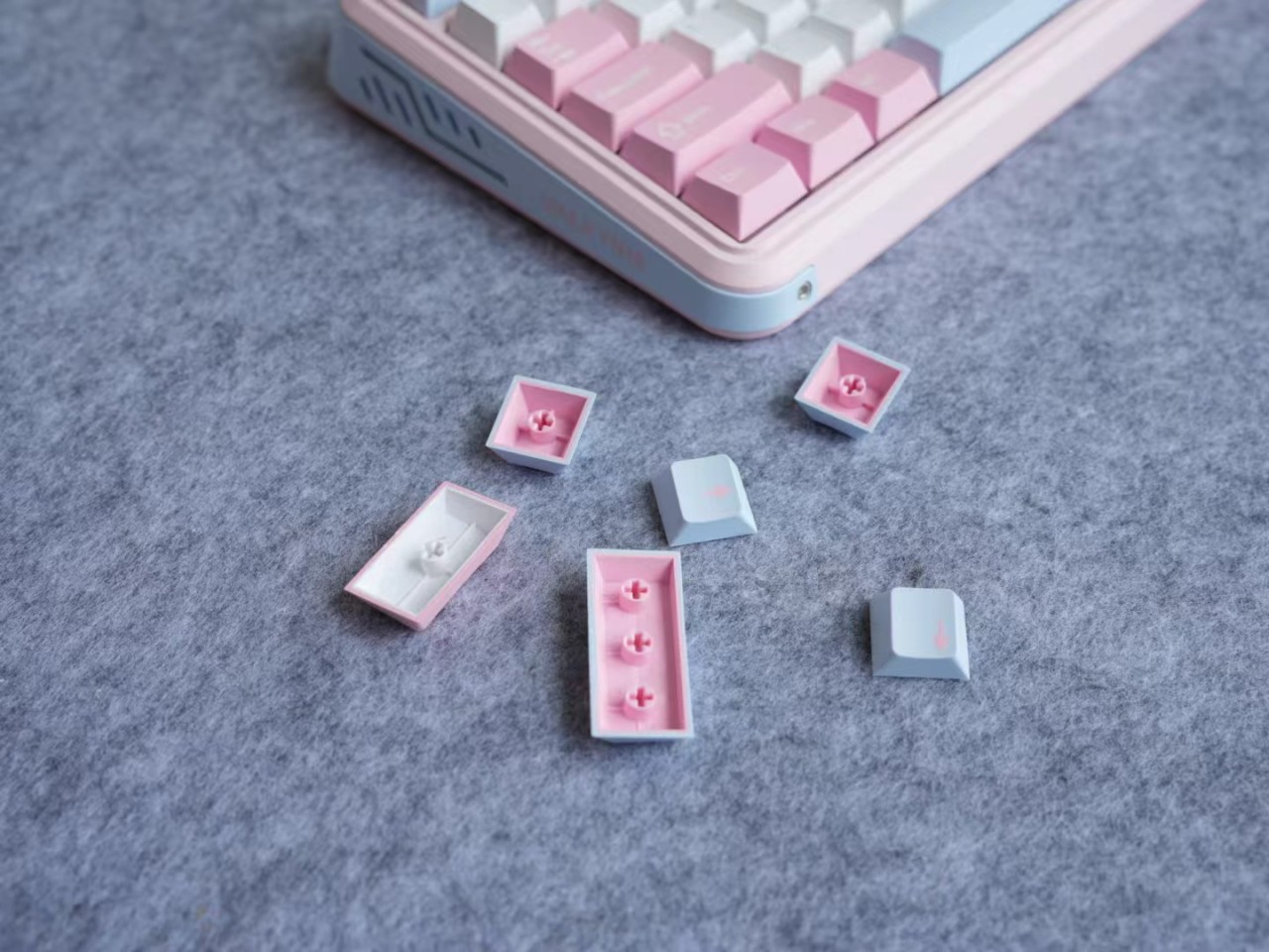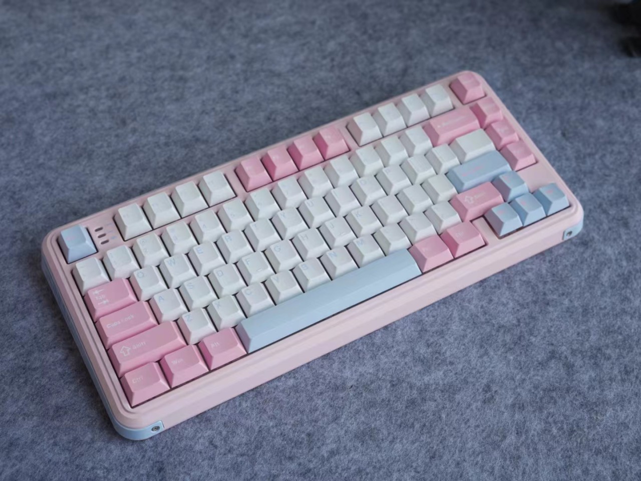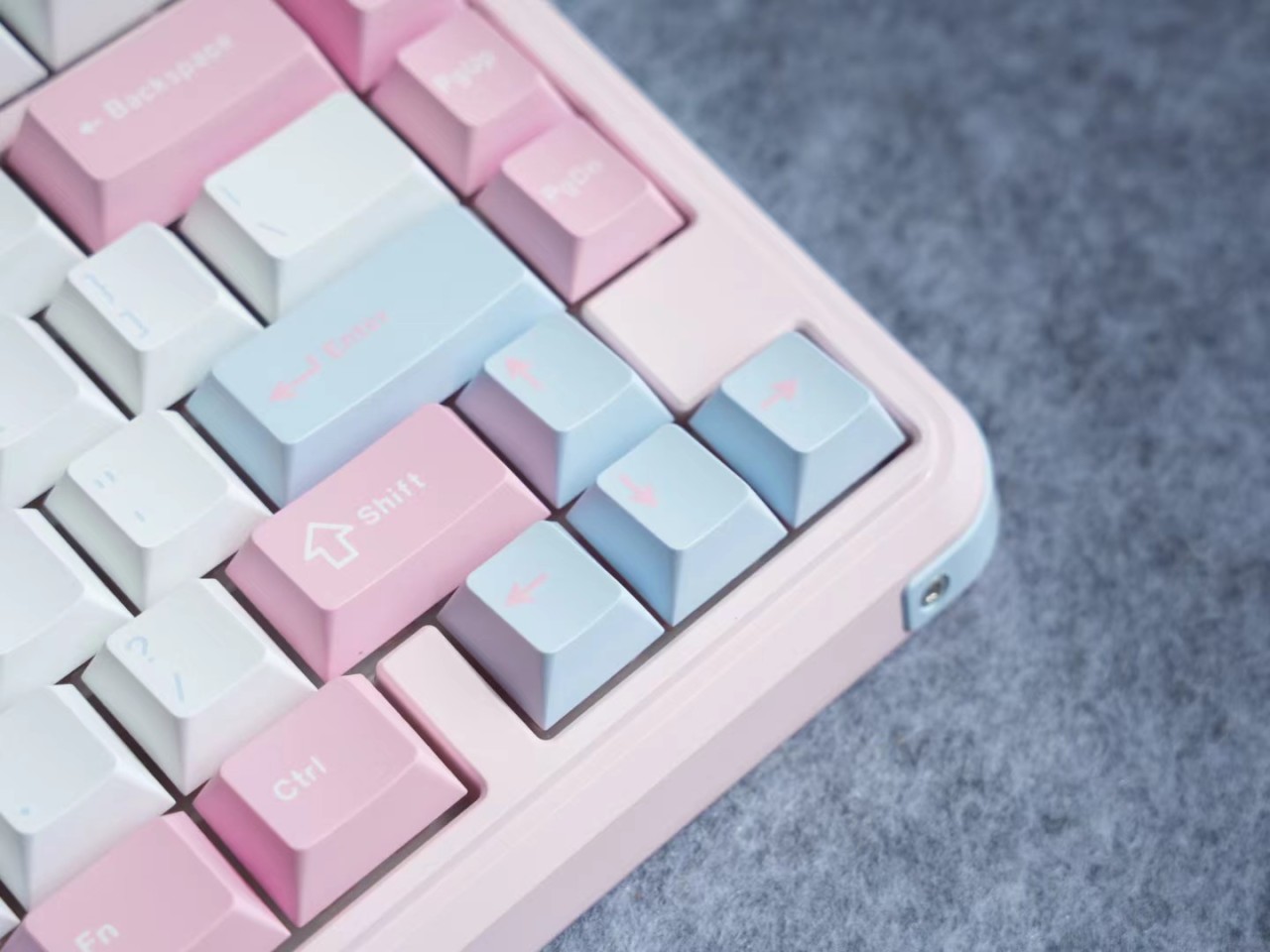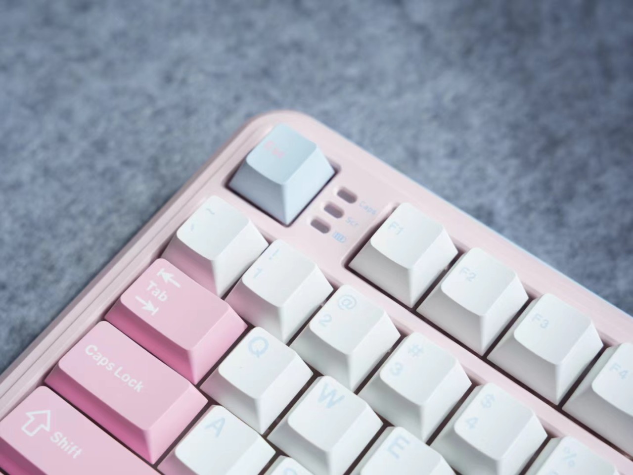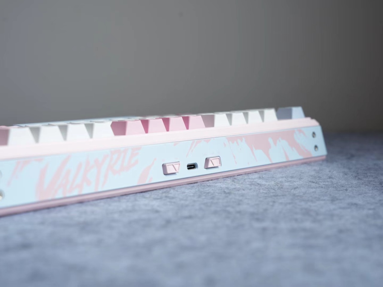 VK75这次也是命名一样采用75配列,而外壳方面则是采用粉蓝装色的设计,是非常贴合本次的主题幻粉。