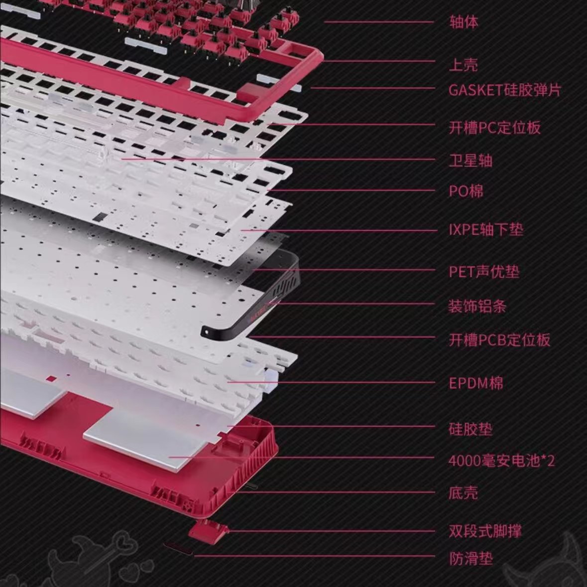轴下垫:采用PET垫和一张白色ixpe8倍,白色相比黑色灯光效果会好一些,PE垫这玩意是真声优。