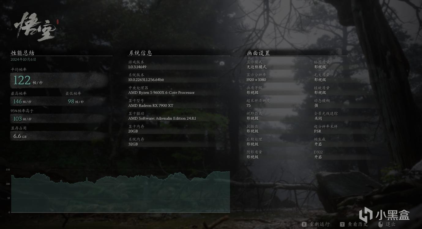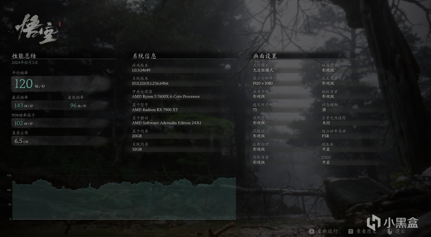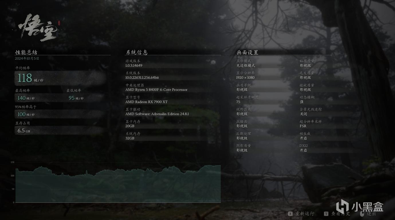 首先是当今流行的3A大作黑神话.悟空,选择了性能测试工具,在推荐的配置下,1080P分辨率,影视级画质,关闭光追。三种CPU下的帧速分别是118帧/120帧/122帧,略有不同。