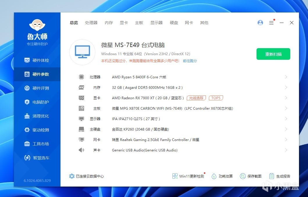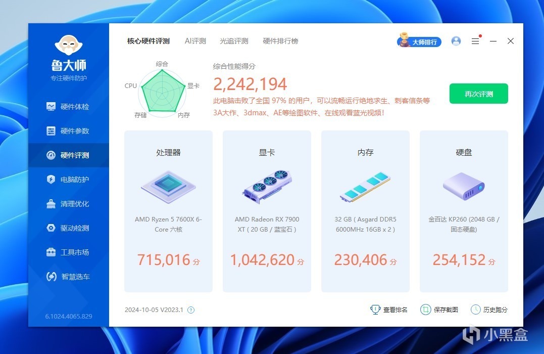 内存方面,选择了知名国产厂商阿斯加特的瓦尔基里.女武神二代内存,由于AMD 主板的特性,6000MHz是甜点频率,所以选择了这款低时序的6000MHz DDR5内存。
