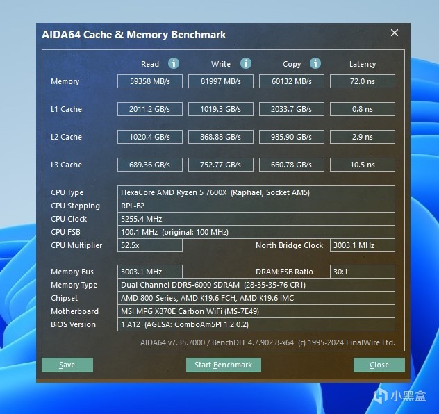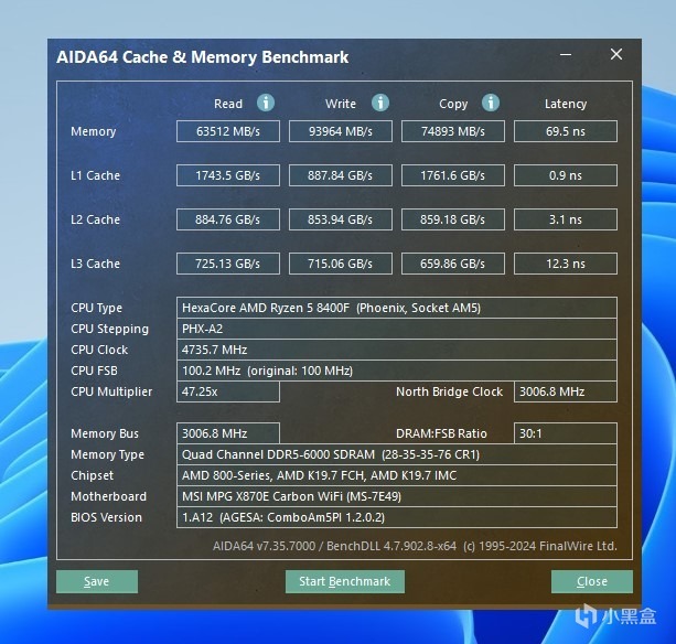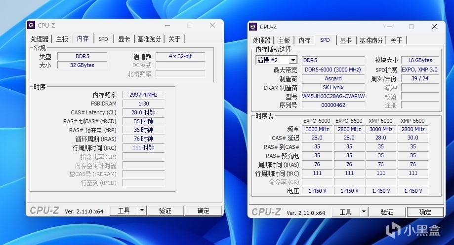内存则是一样的,DDR5 6000MHz,海力士颗粒,时序28-35-35-76。