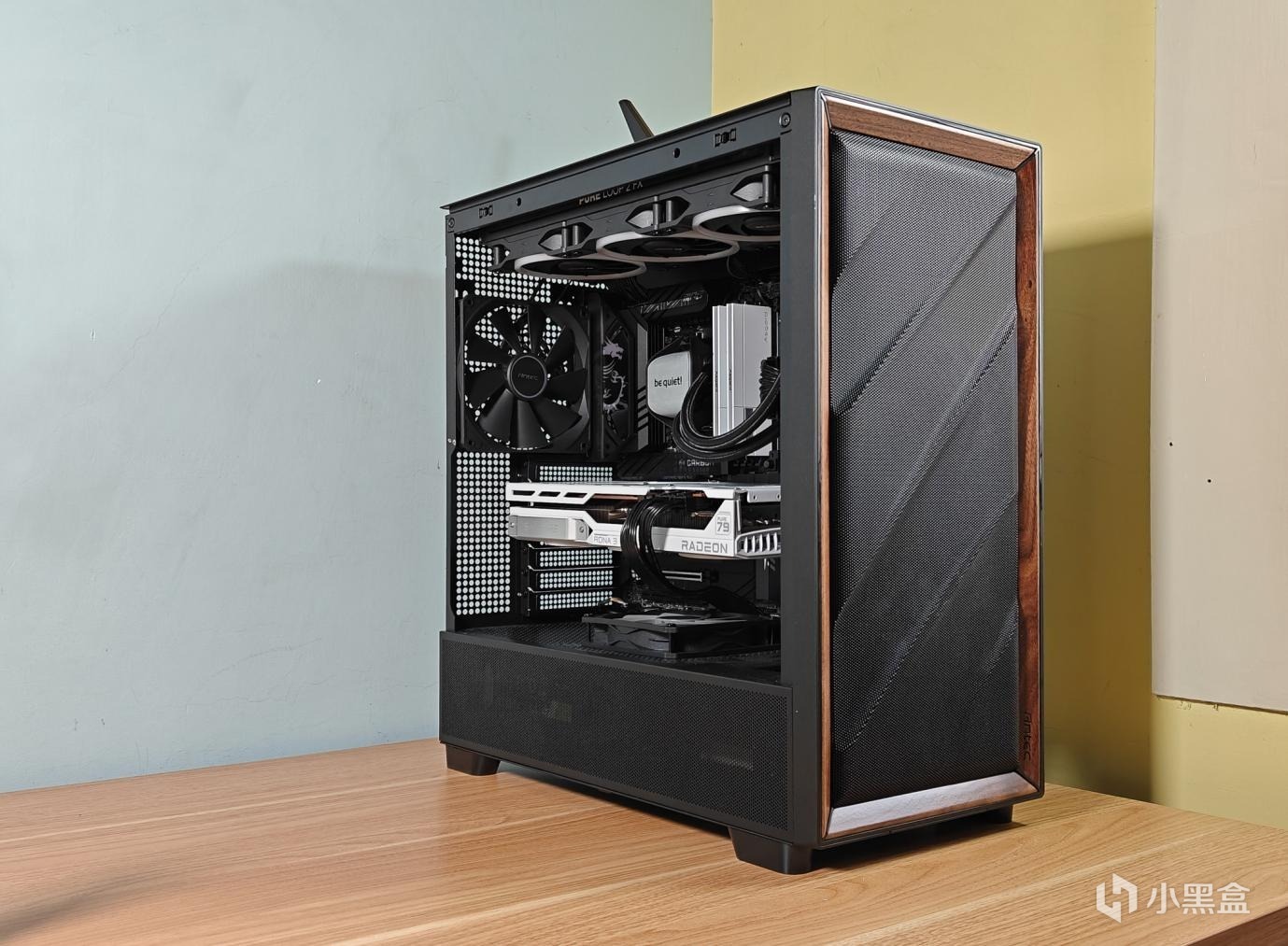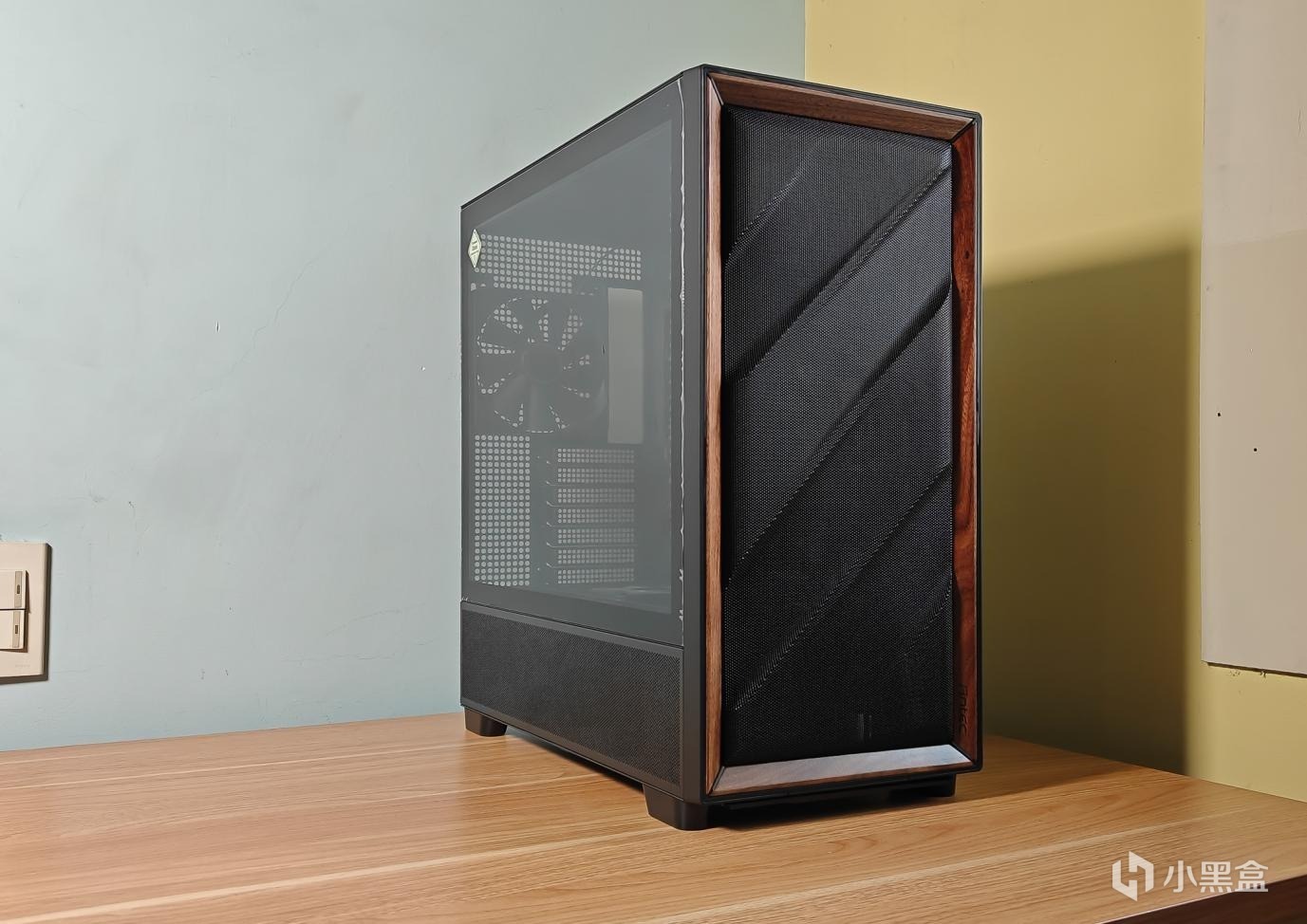 虽然AMD的CPU的TDP不高,但是良好的散热依然是需要的。选择了安钛克的这款FLUX机箱。这款机箱具有专利的风道设计,同时外观也很漂亮,庄重大方。 它全身黑色,正面前面板是波浪形丝网,充满动感。周边是原木框,木框是经过认证的实木胡桃木。左侧面下面一条是丝网通风,上面是块玻璃侧透。