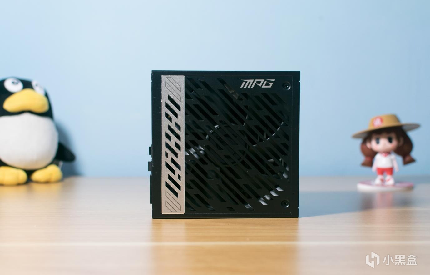 电源方面,配备了微星的MAG A1000GL PCIE5 ,这是款黑色的全模组电源,具有80PLUS金牌认证。它的尺寸是140mmx150mm,具有良好的机箱兼容性。它支持最新的PCIE5,支持ATX3.0,可以确保电脑整机稳定运行,可以承受瞬时全机2倍功耗和3倍显卡功耗。它带有最新的12V-2x6接口,支持600W直供显卡,安全可靠。风扇采用了FDB动态液压轴承,运行安静。